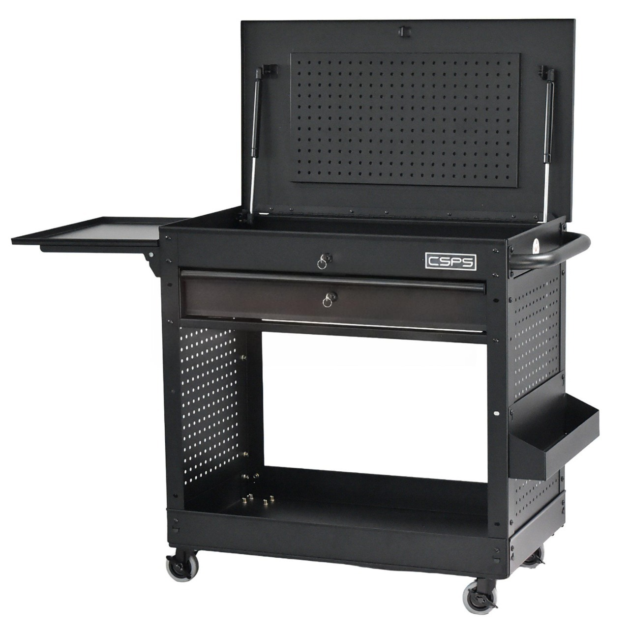 Ghế ngồi sửa chữa xe có ngăn kéo màu đen