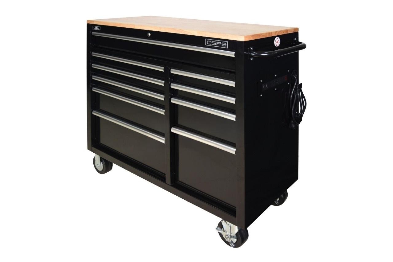 CSPS Glossy Black tool cabinet 104cm - 10 wooden plank drawers
