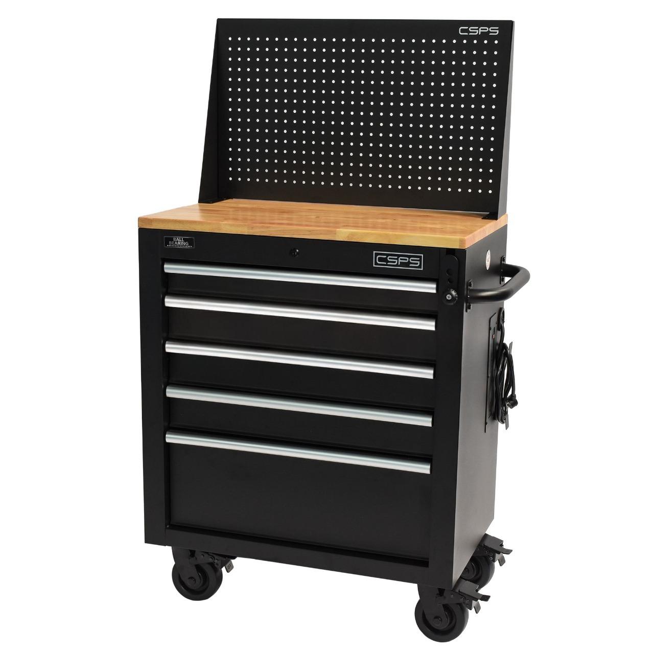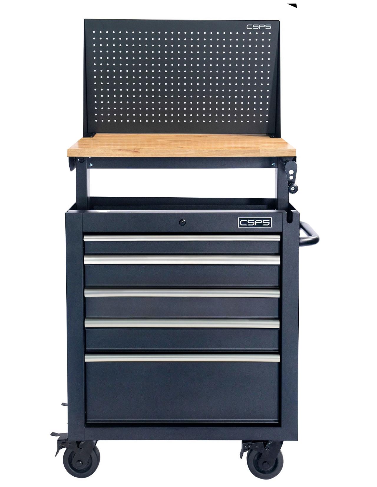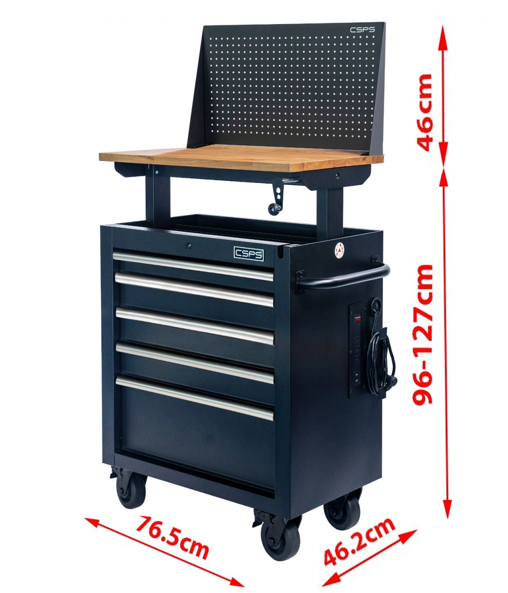 CSPS Tool Cabinet Matt Black 76cm Lift with pegboard – 05 Drawers (white handles)