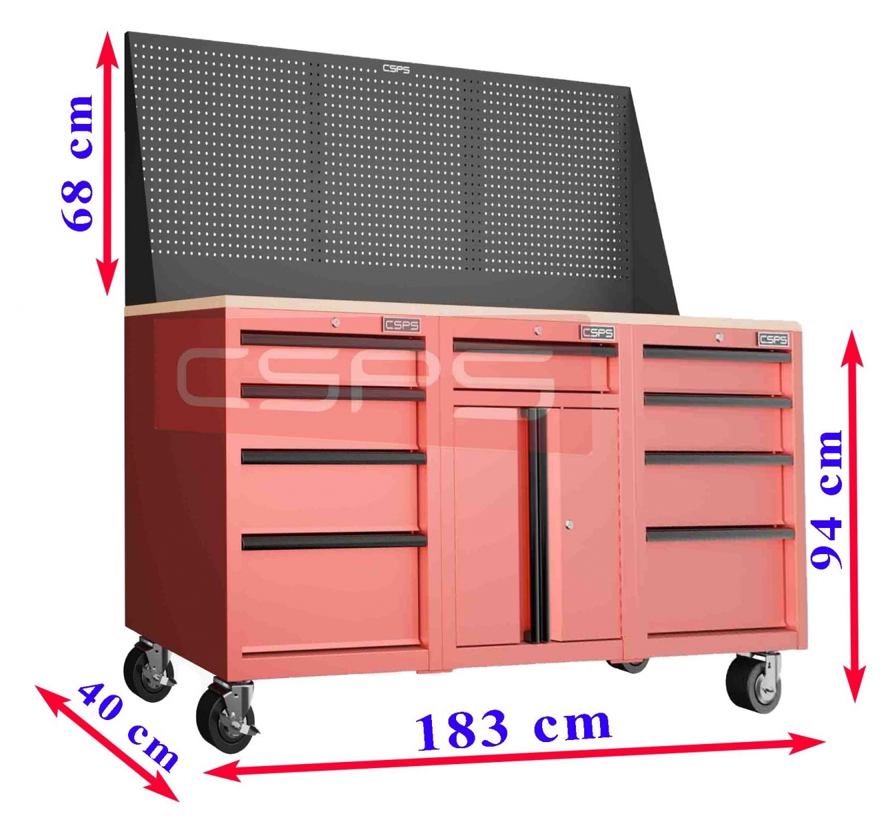 CSPS 183cm Red Tool Cabinet Set with Wooden Top and Pegboard – 09 Drawers