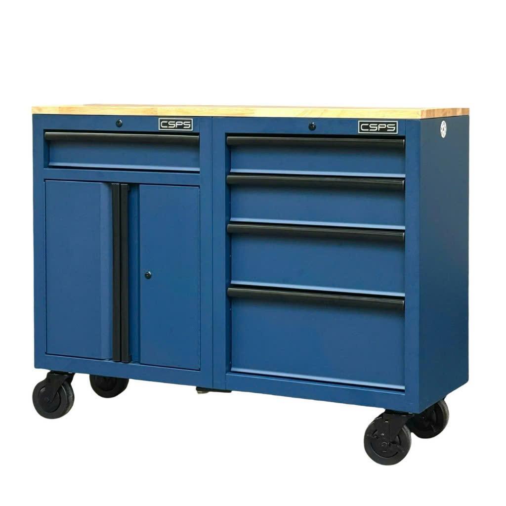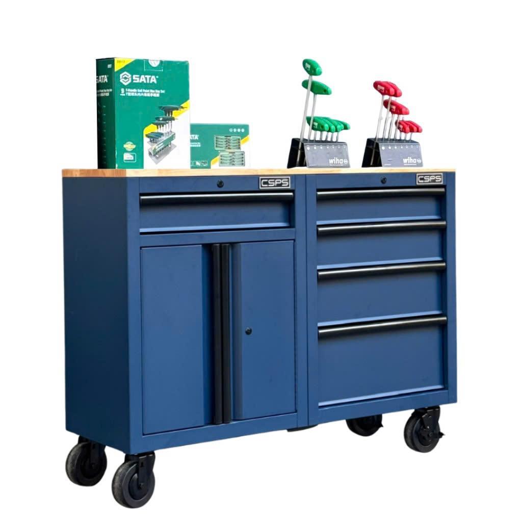 Tủ dụng cụ CSPS 122cm - 05 hộc kéo màu xanh dương mặt ván gỗ