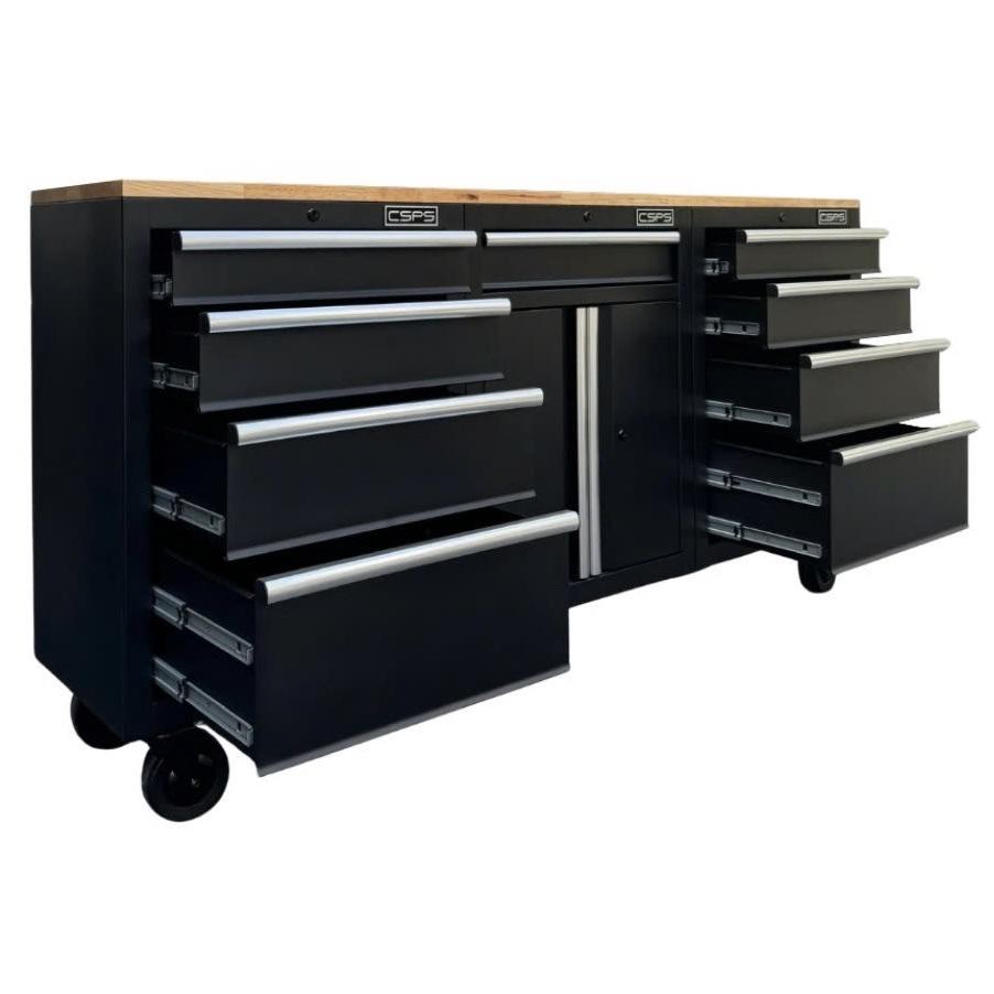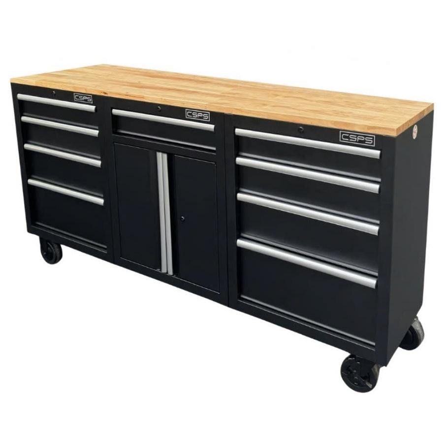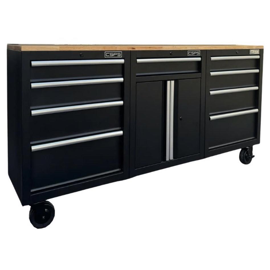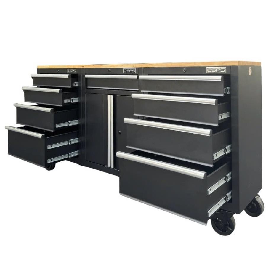 Tủ dụng cụ CSPS 183cm - 09 hộc kéo màu đen mặt ván gỗ (tay nắm trắng)
