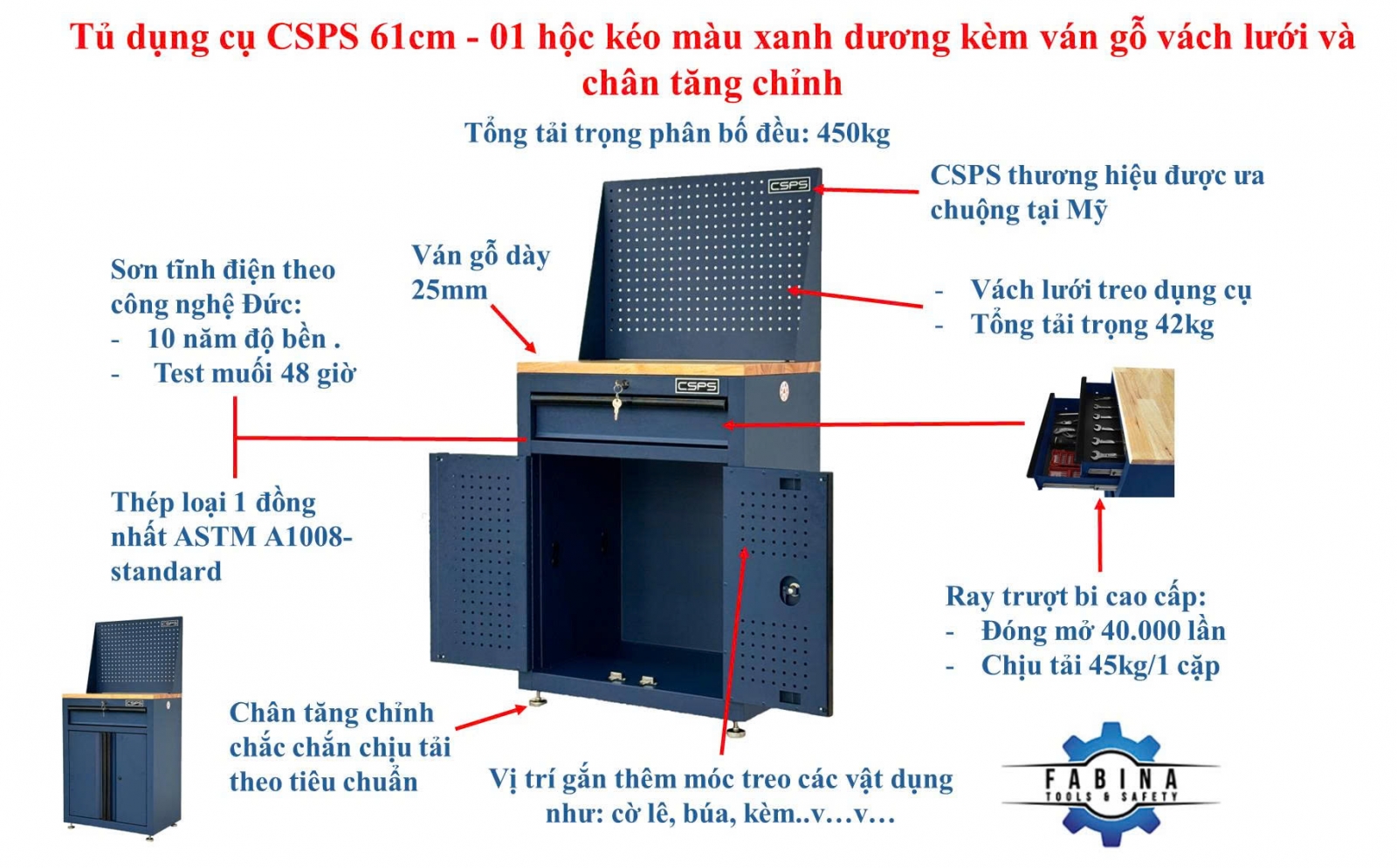 CSPS Blue Tool Cabinet 61cm with Wooden Top – 01 Drawers