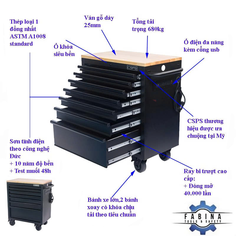 CSPS tool cabinet 76 cm – 07 drawers (black handles)