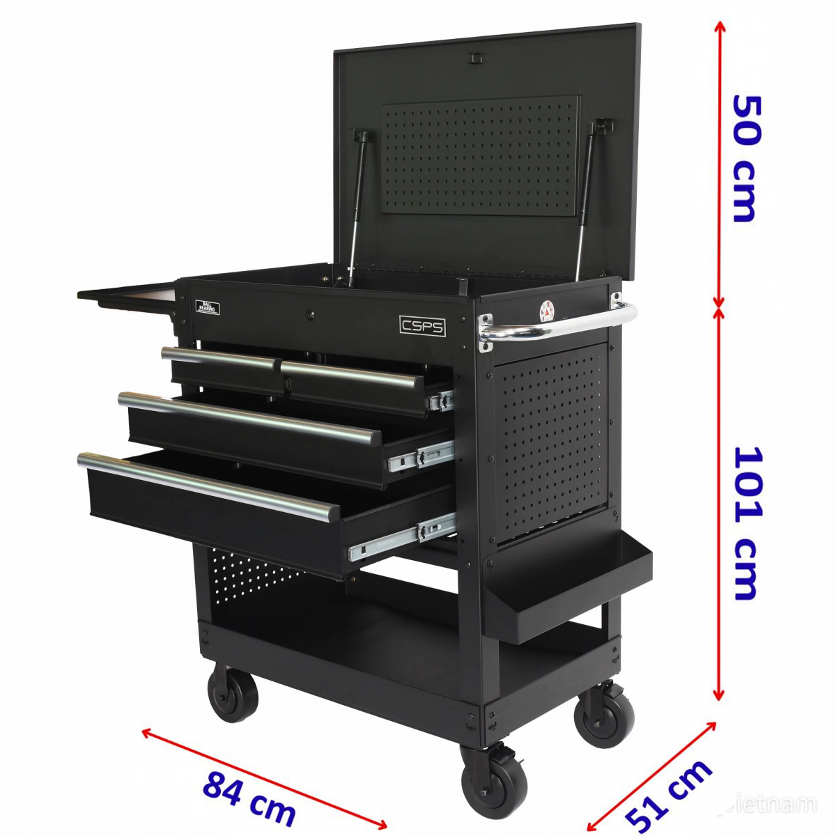 CSPS Black Tool Cabinet 84cm - 4 Drawers (white handles)