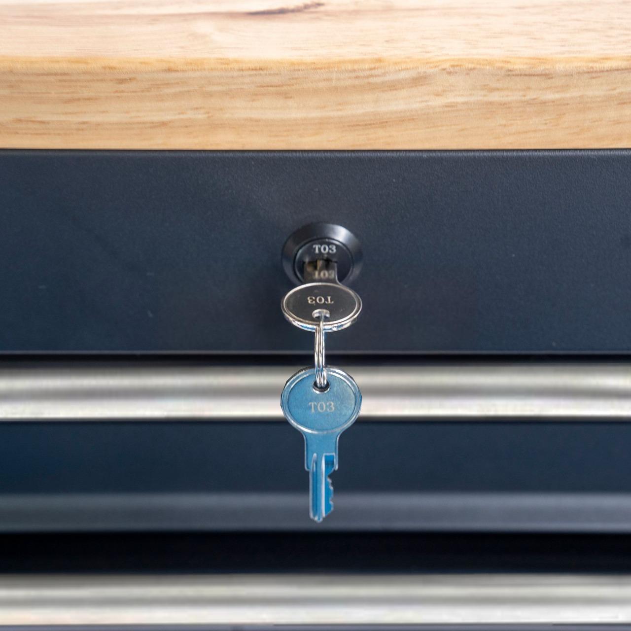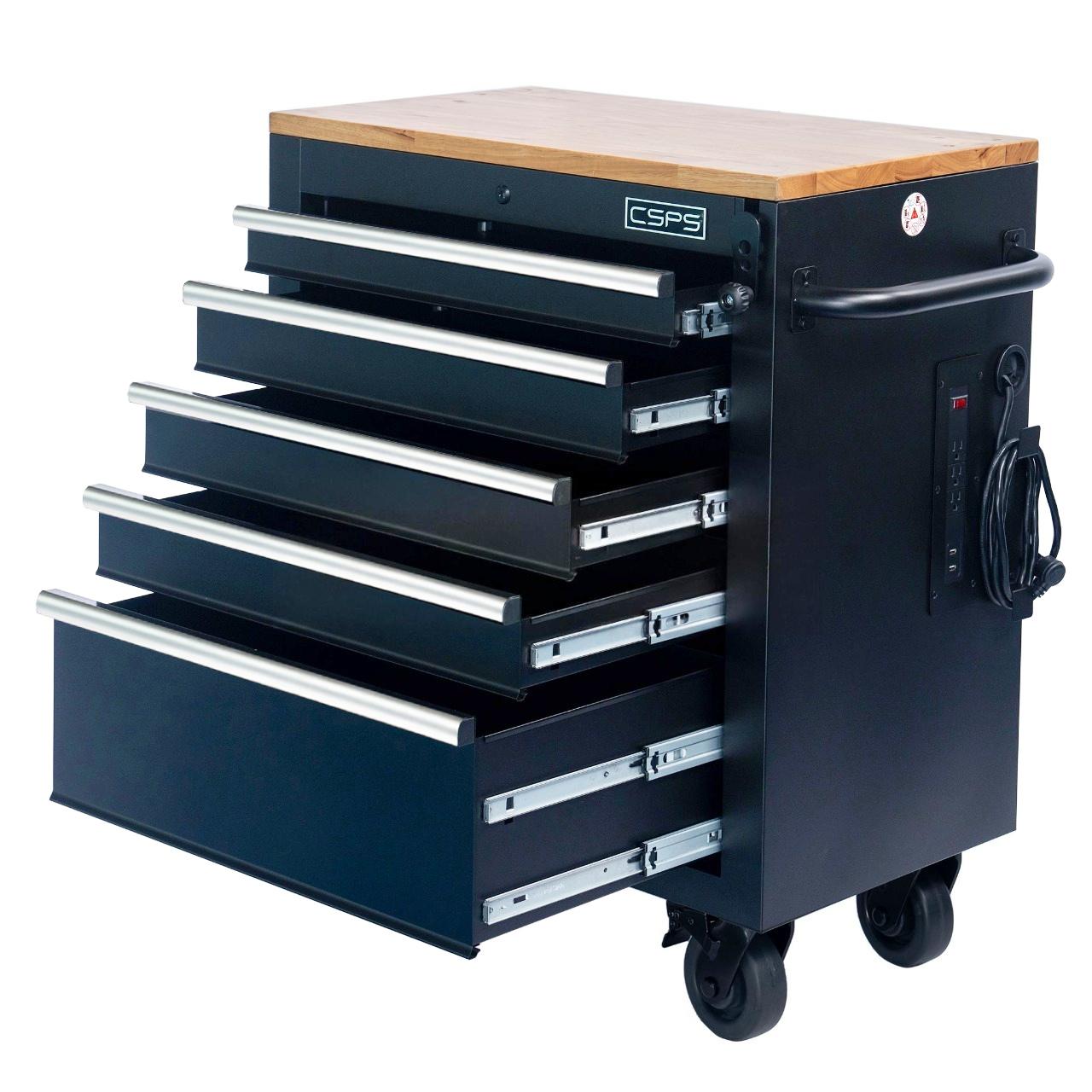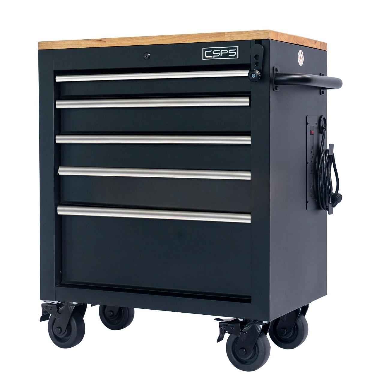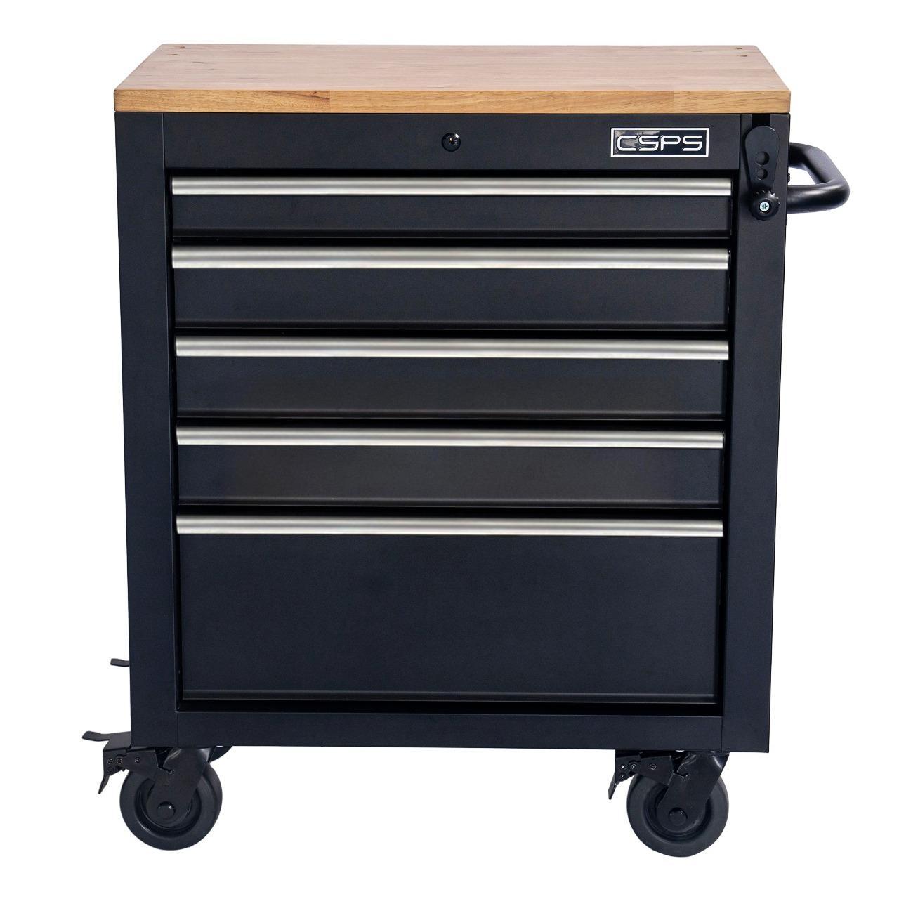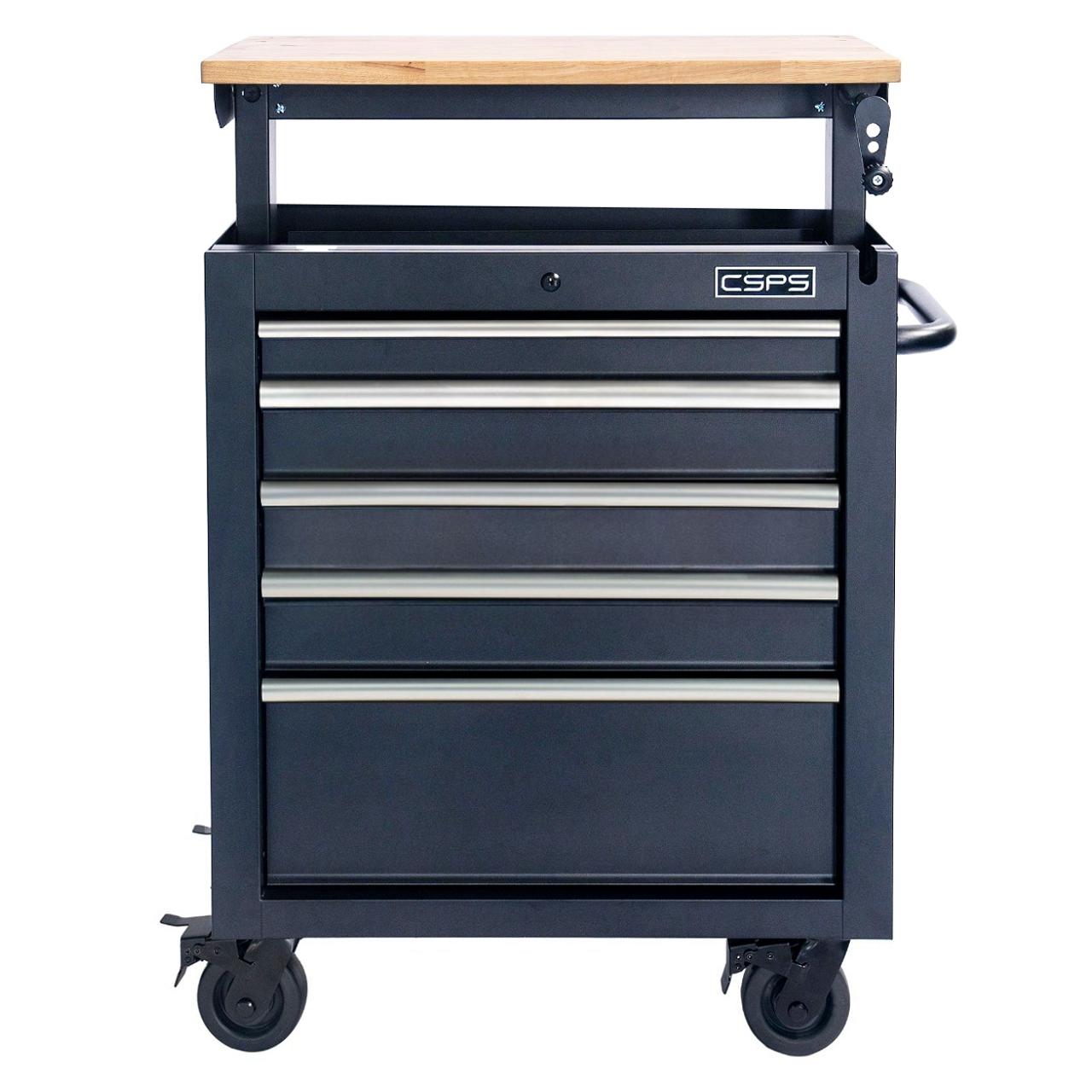 CSPS Matt Black Tool Cabinet 76 cm with Lift-up Top – 05 drawers (white handles)