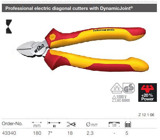 Kìm cắt 180mm cách điện 1000V Wiha 43340