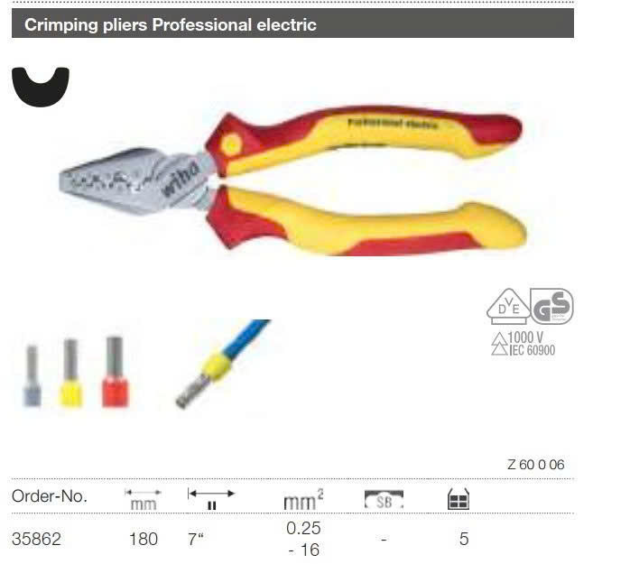 Kìm bấm cos cách điện 1000V Wiha 35862