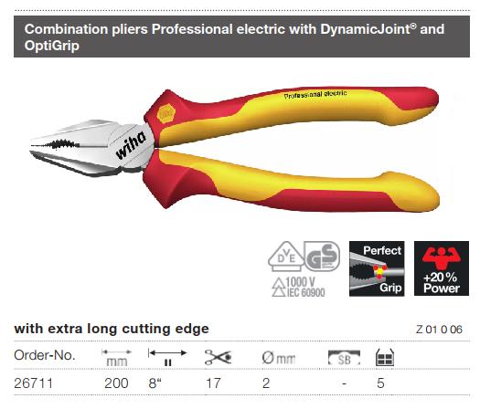 Kìm đa năng Wiha 26711 200mm cách điện 1000V