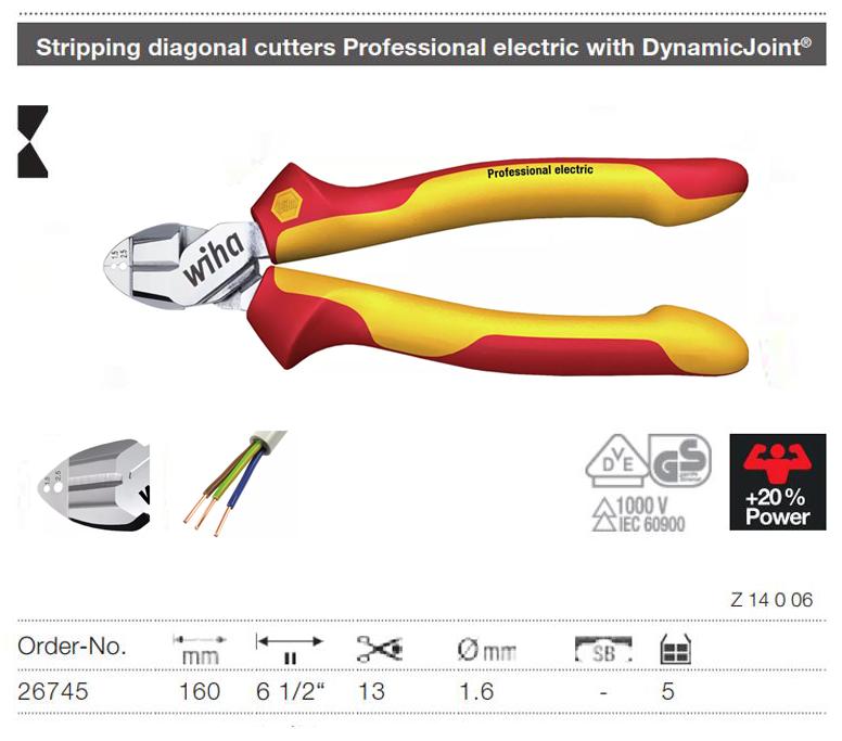 Wiha 26745 Stripping diagonal cutters Professional Electric with DynamicJoint®