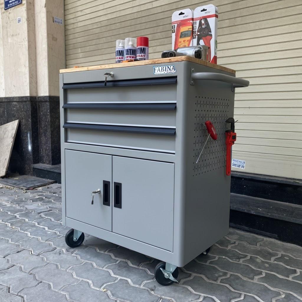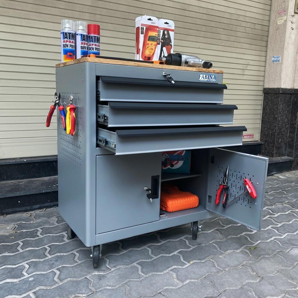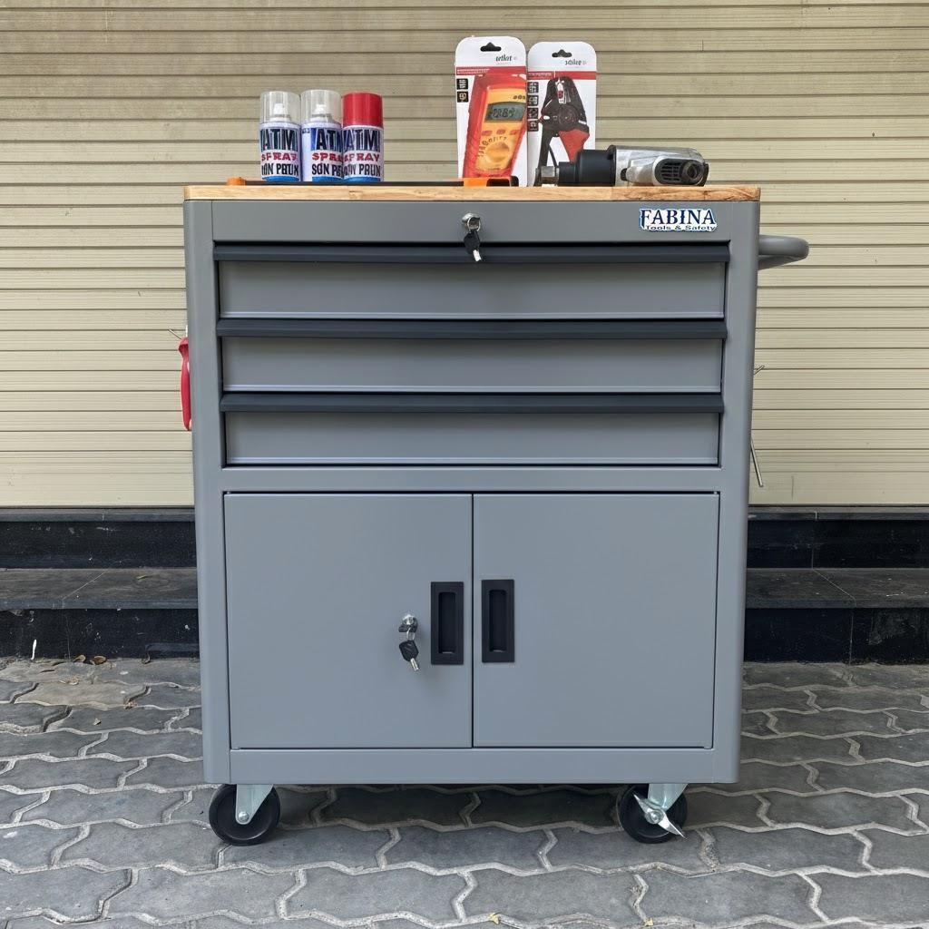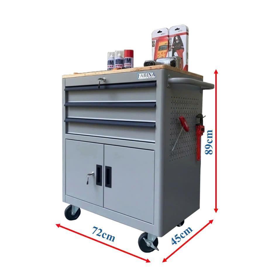 Tủ dụng cụ 3 hộc kéo 2 ngăn chứa màu xám Fabina