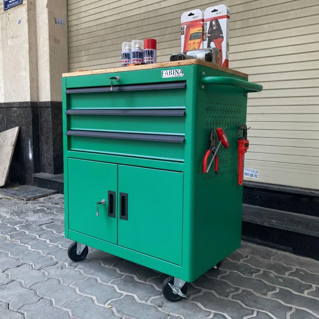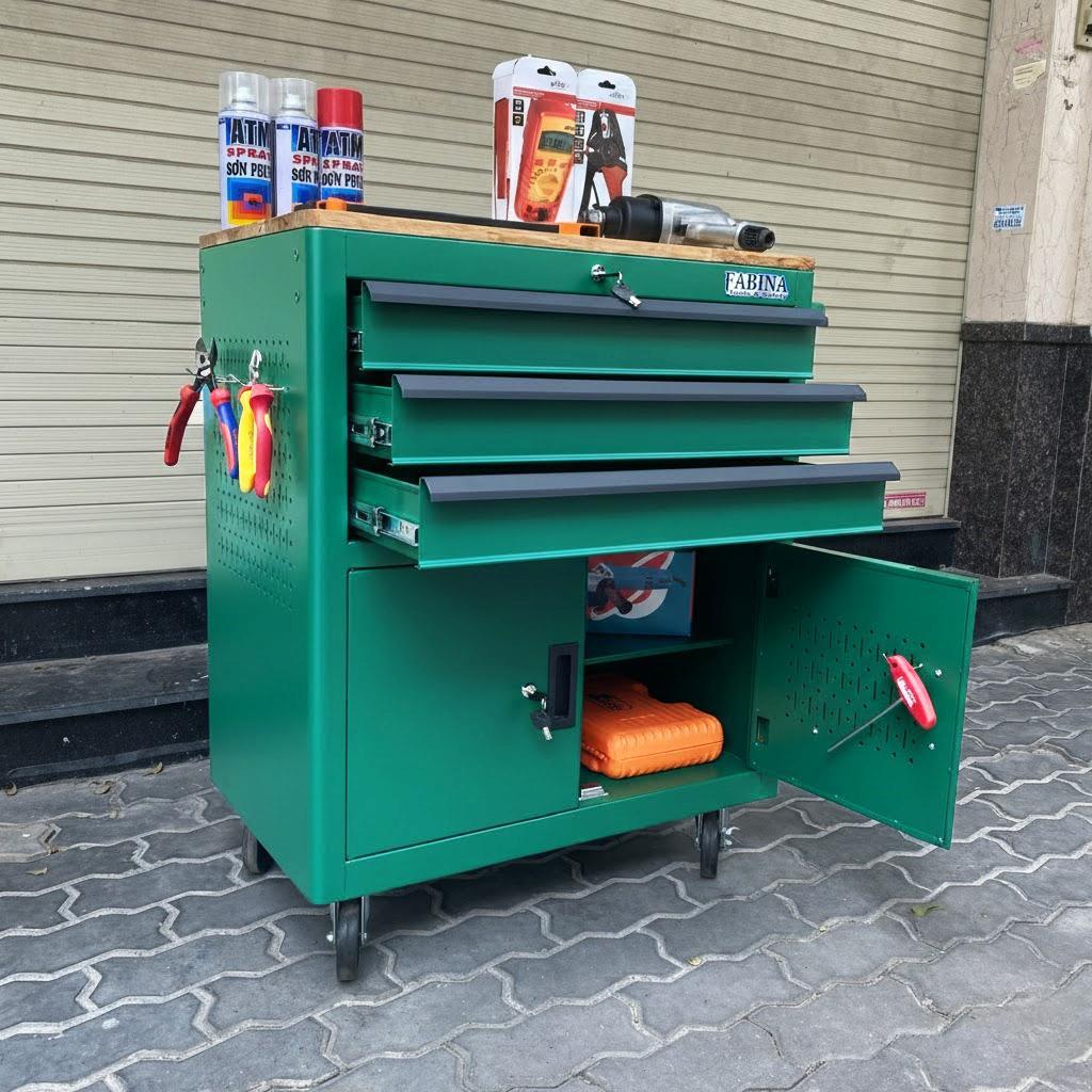 Tủ dụng cụ 3 hộc kéo 2 ngăn chứa màu xanh lá Fabina