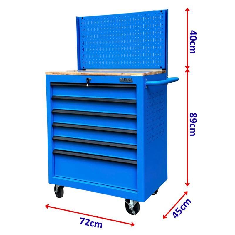 Fabina blue 6-drawer tool cabinet with pegboard