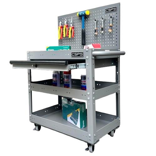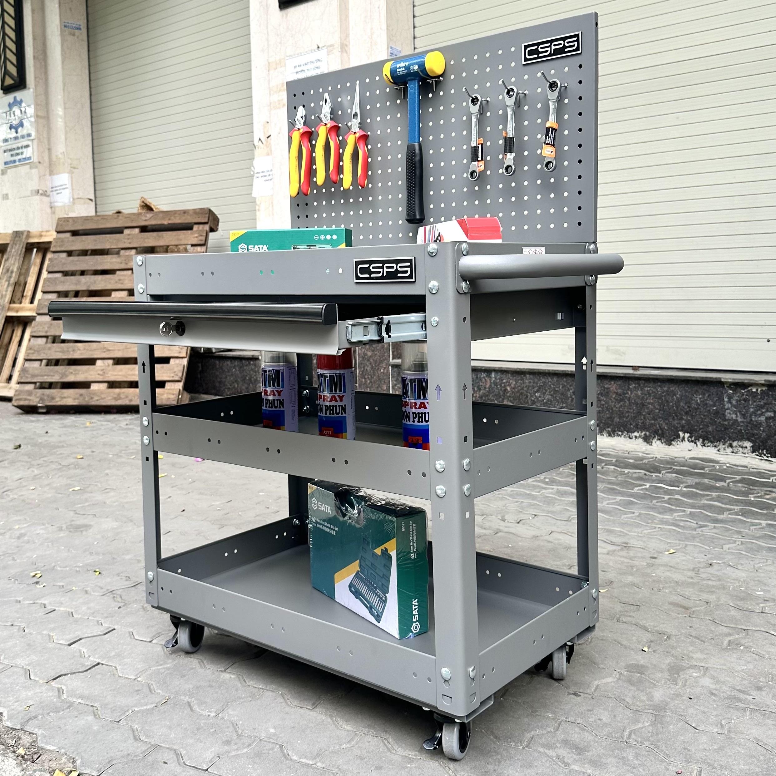 Xe đẩy CSPS 3 ngăn 71cm màu xám 01 hộc kéo kèm vách lưới