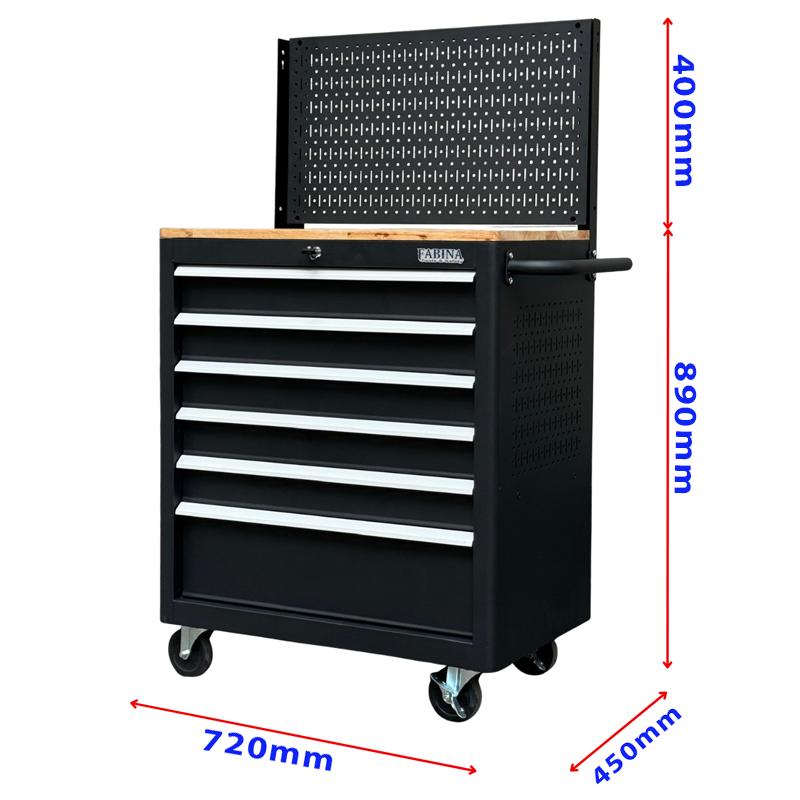 Tủ dụng cụ 6 hộc kéo màu đen kèm vách lưới Fabina