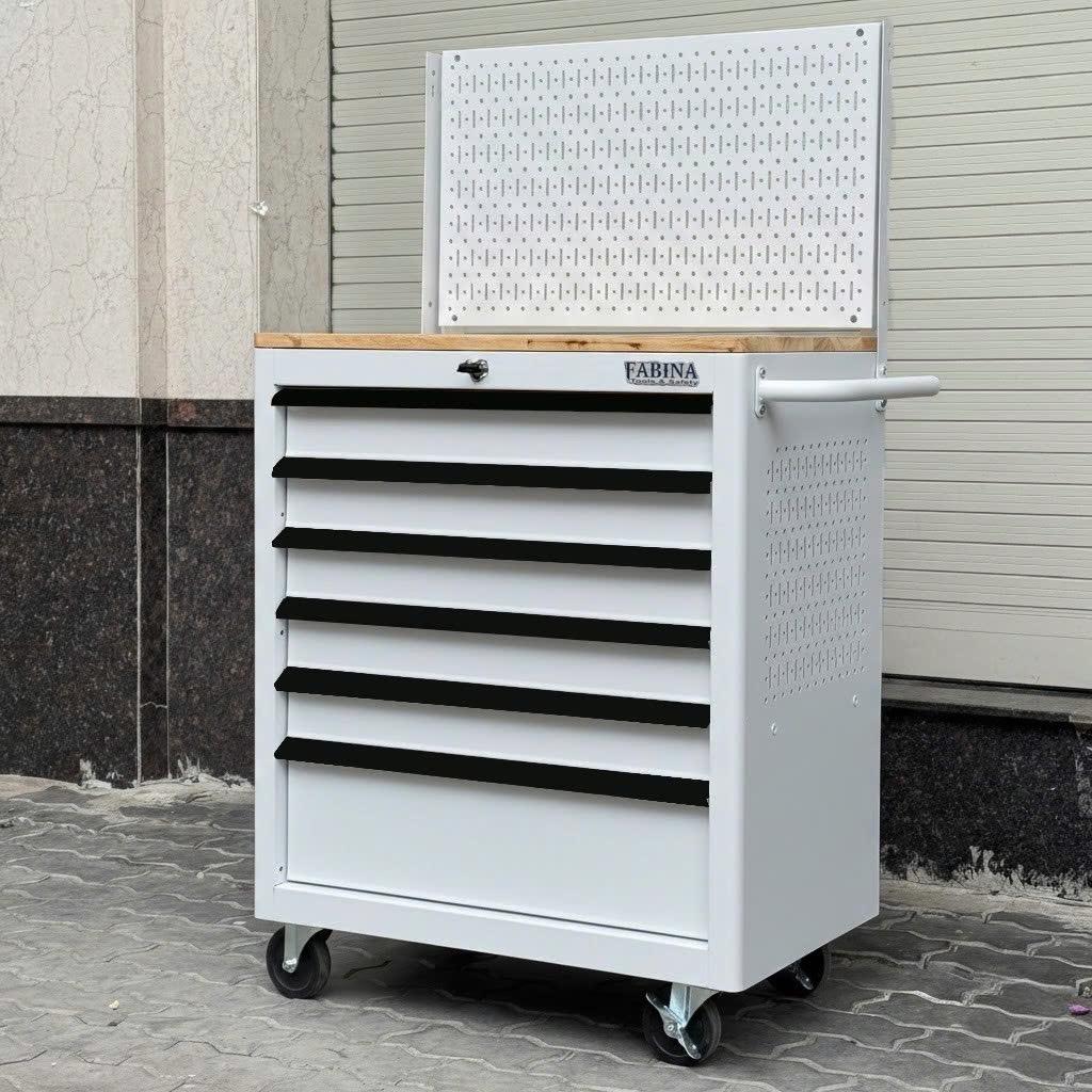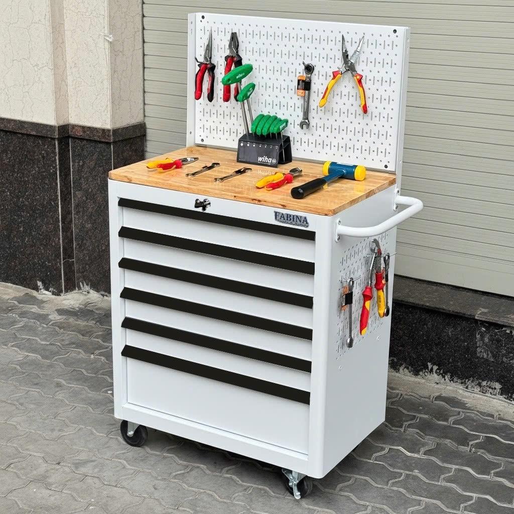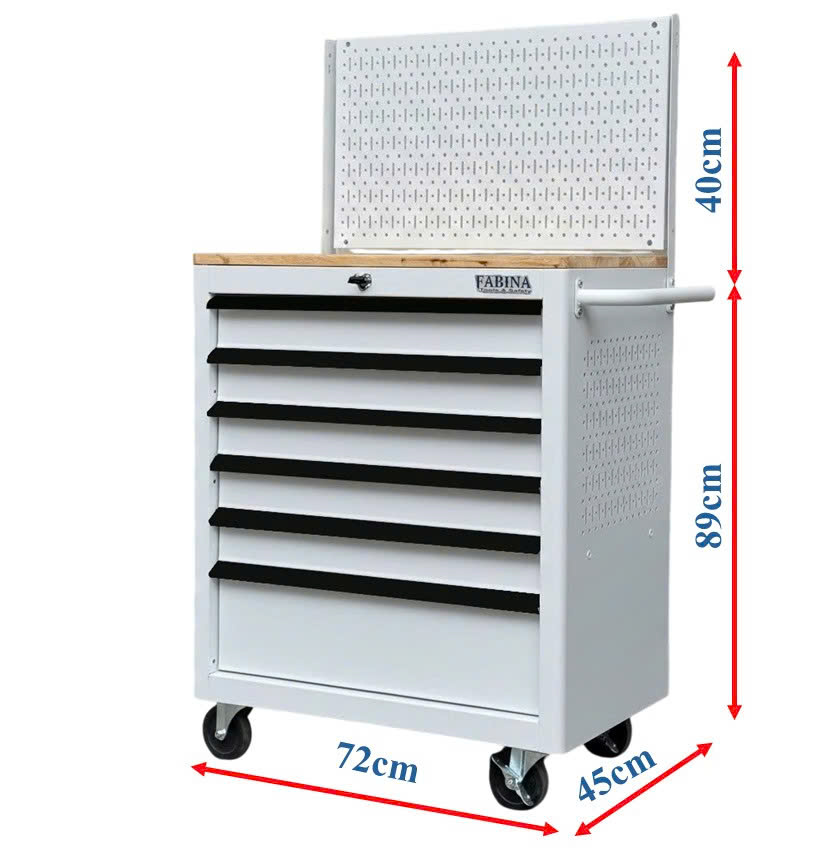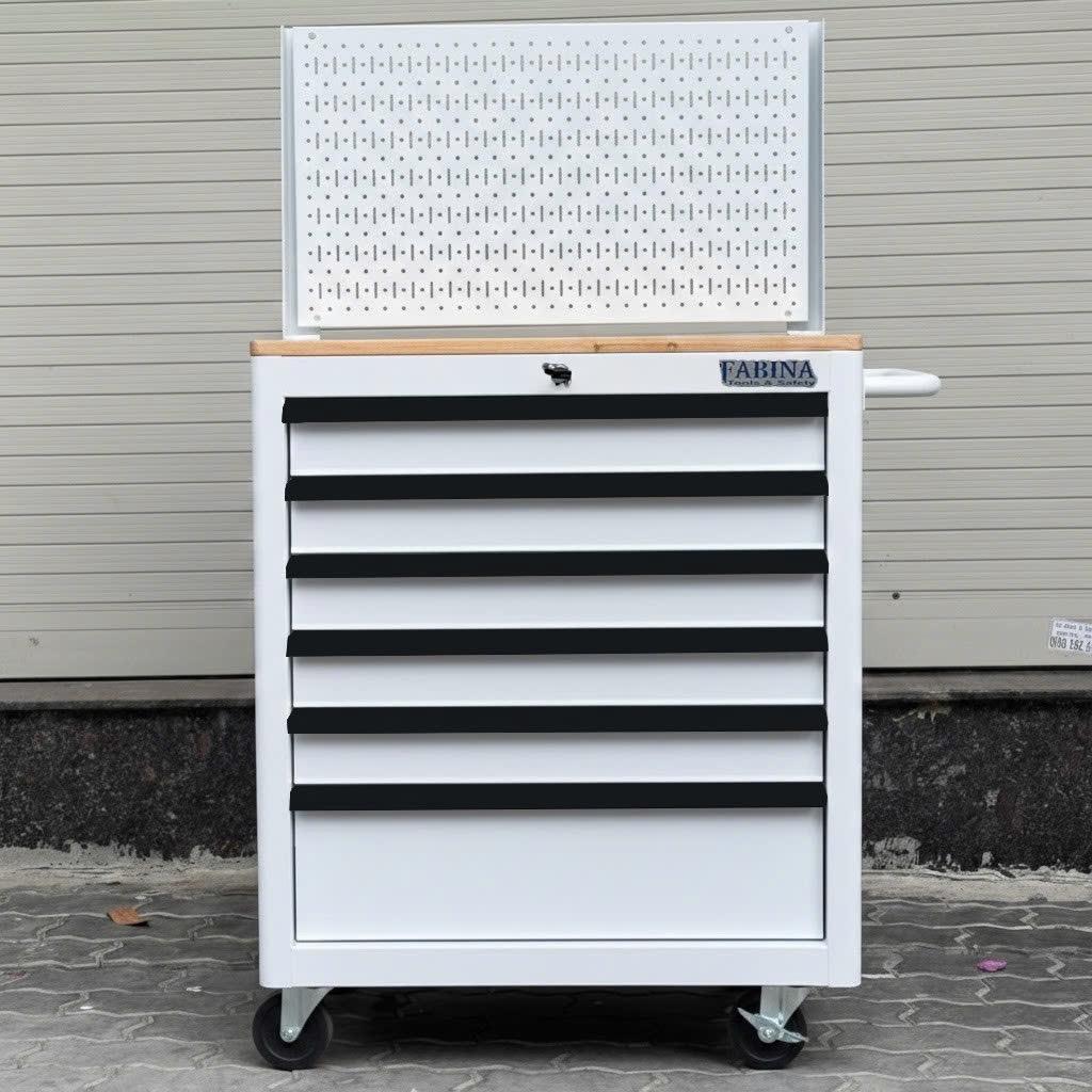 Tủ dụng cụ 6 hộc kéo màu trắng kèm vách lưới Fabina