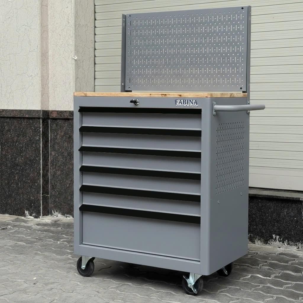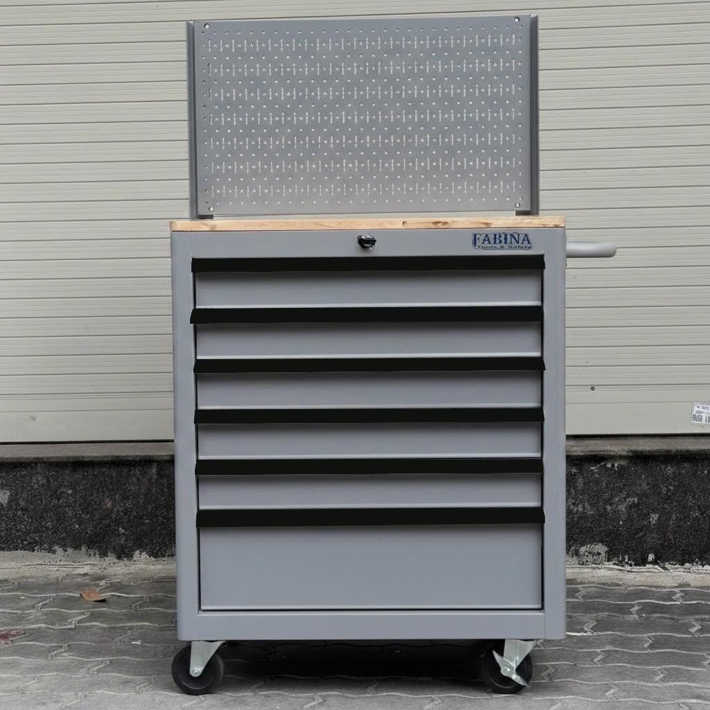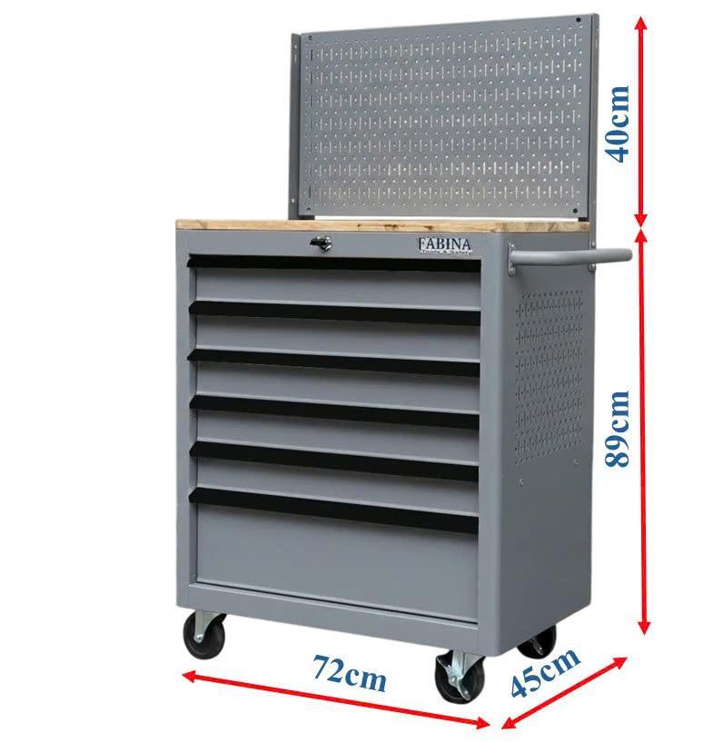 Tủ dụng cụ 6 hộc kéo màu xám kèm vách lưới Fabina