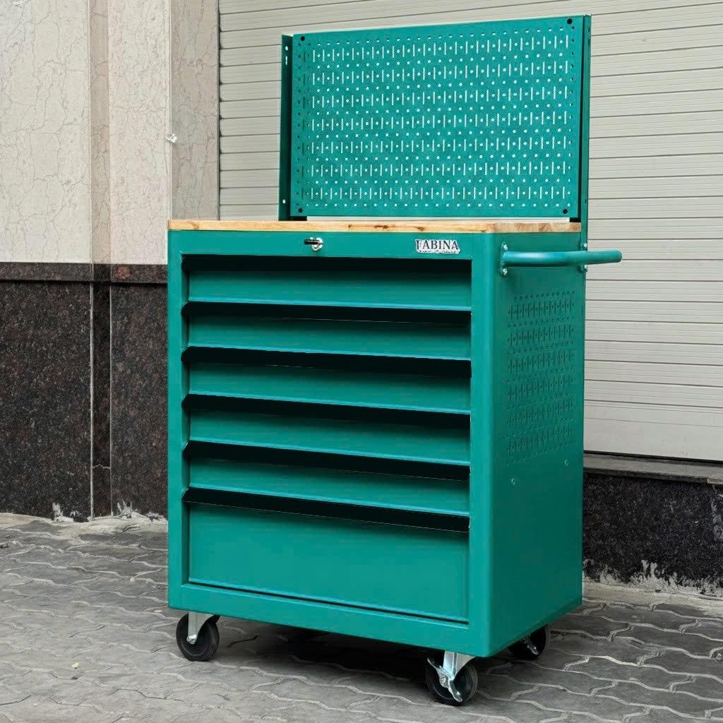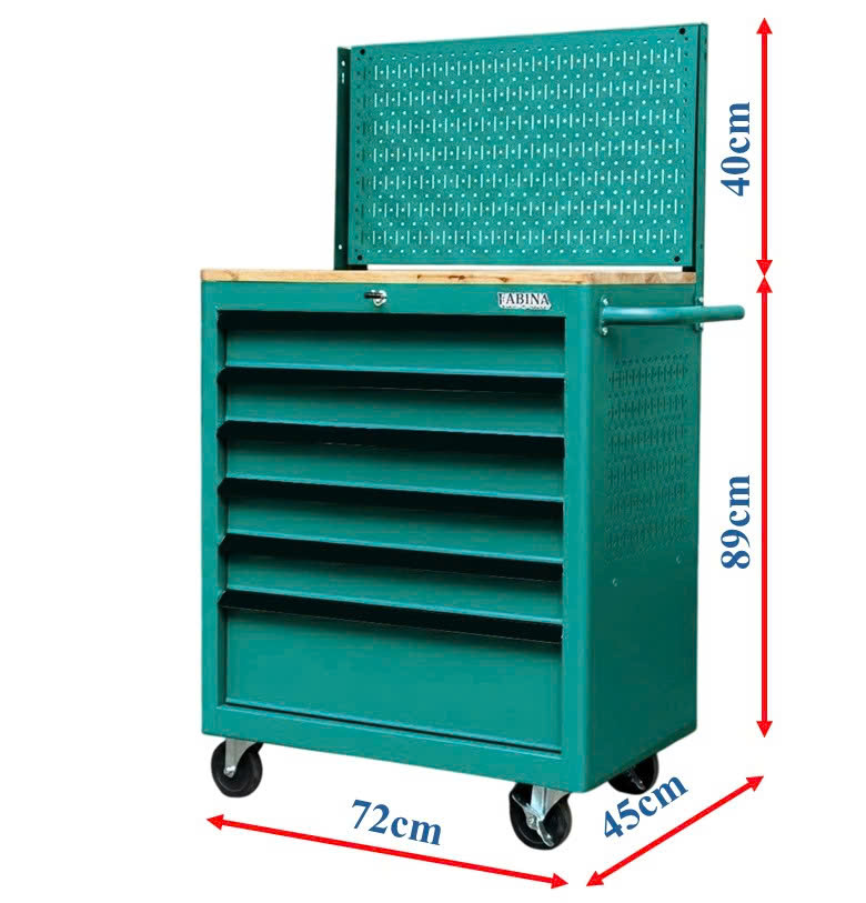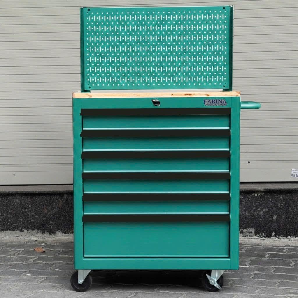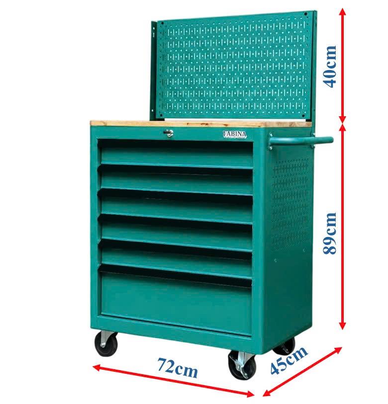 Tủ dụng cụ 6 hộc kéo màu xanh lá kèm vách lưới Fabina