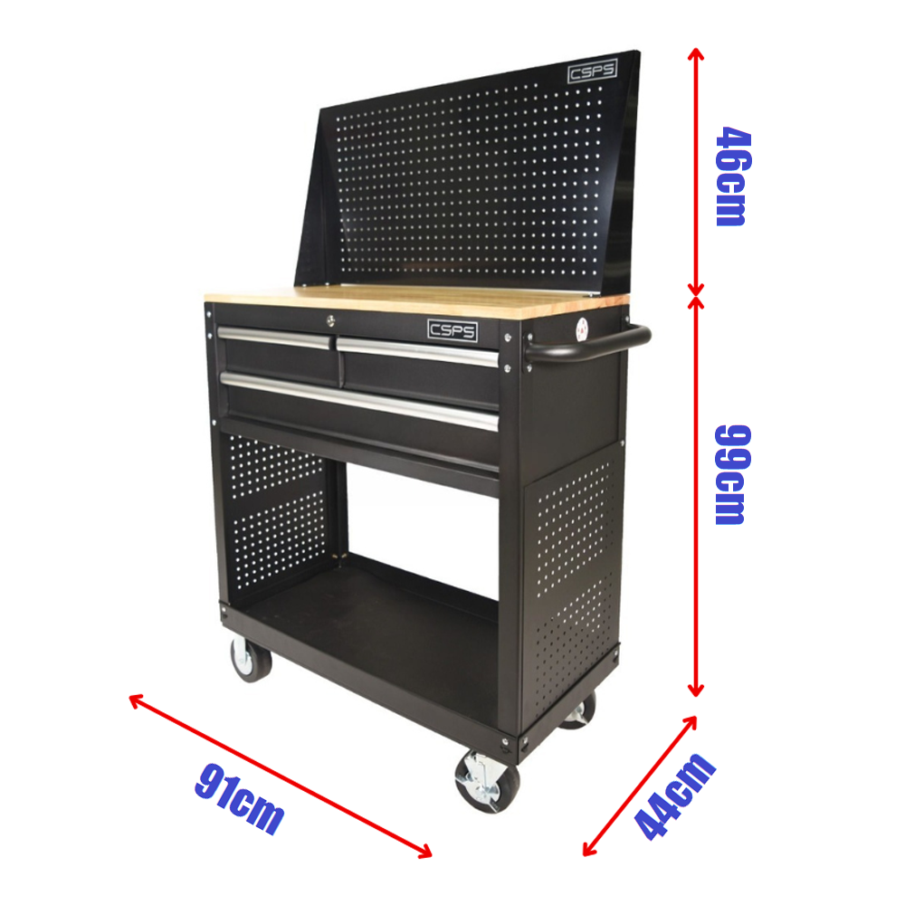 Tủ đồ nghề, tủ dụng cụ CSPS 91cm - 03 hộc kéo màu đen mờ kèm vách lưới