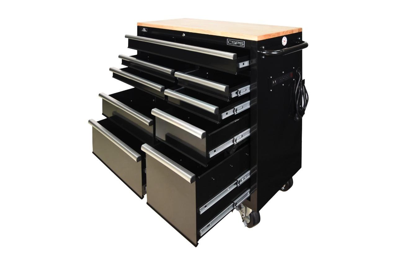 Tủ dụng cụ Tủ dụng cụ CSPS 104cm - 10 hộc kéo ván gỗ, giúp bạn sắp xếp khu vực làm việc hiệu quả, là một trang bị cần thiết cho nhà máy, garage, cửa hàng hay văn phòng làm việc / CSPS tool cabinet 104 cm – 10 drawers wood top which is suitable for workshop, factory, garage, shop, office… will help you organize working area efficiently.