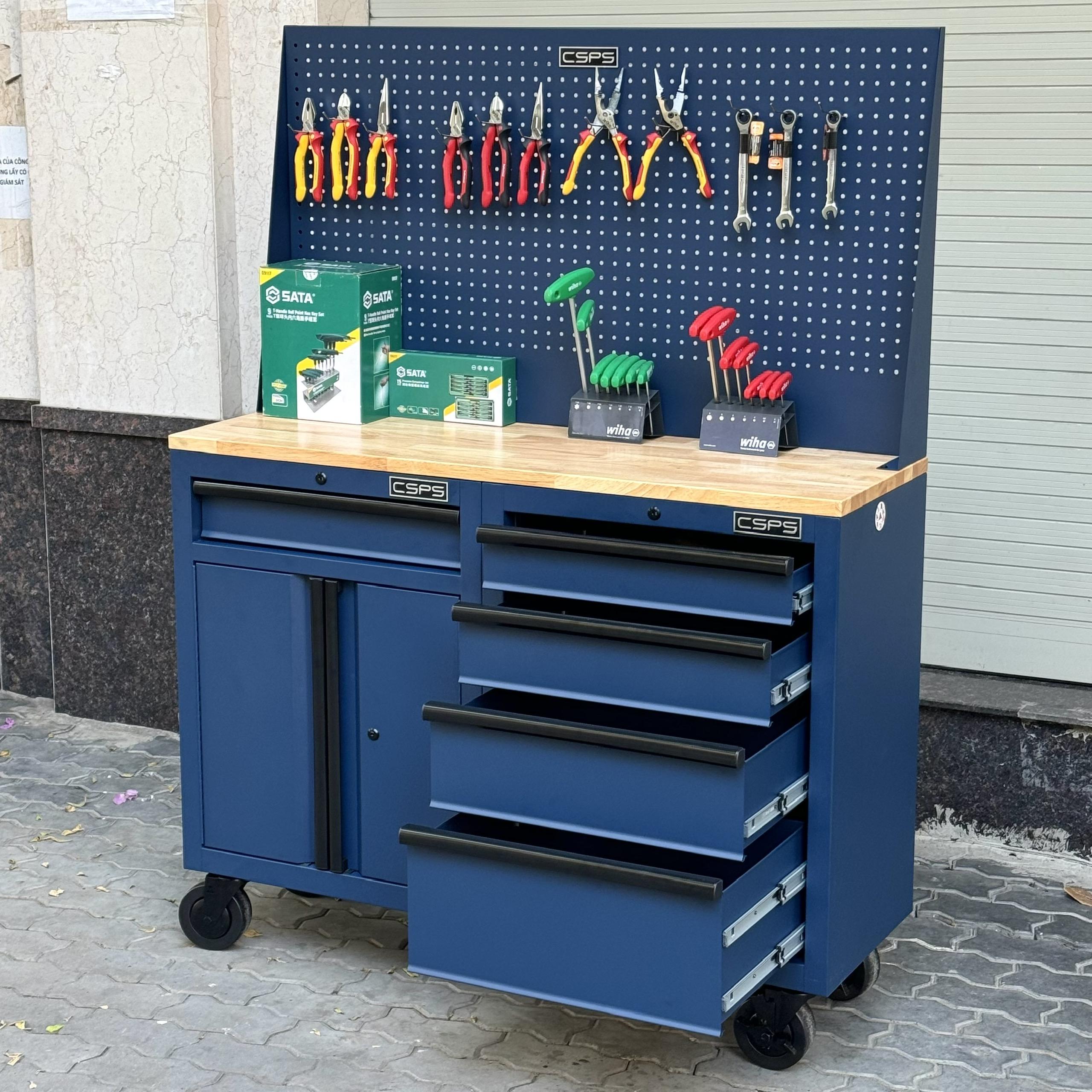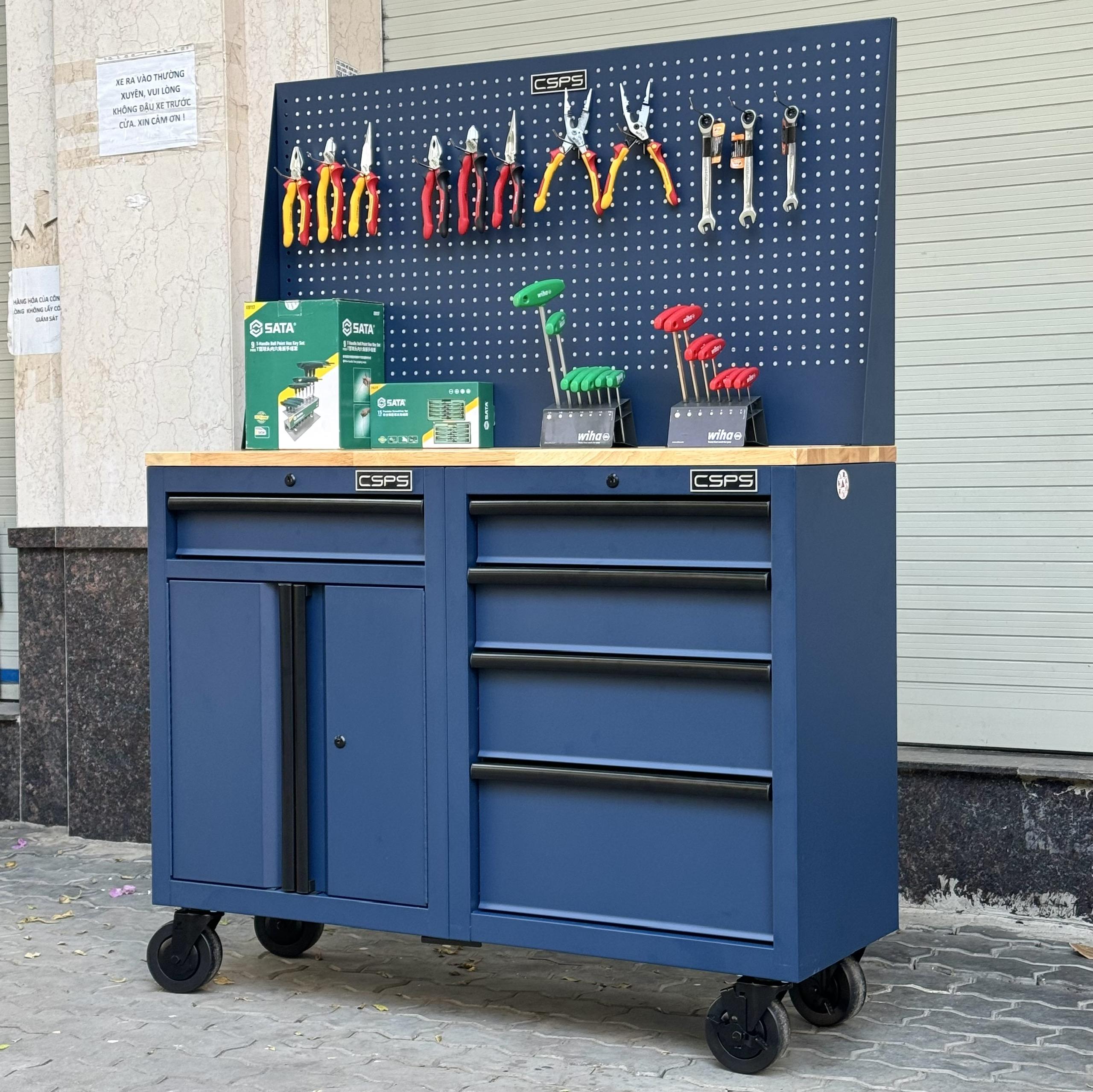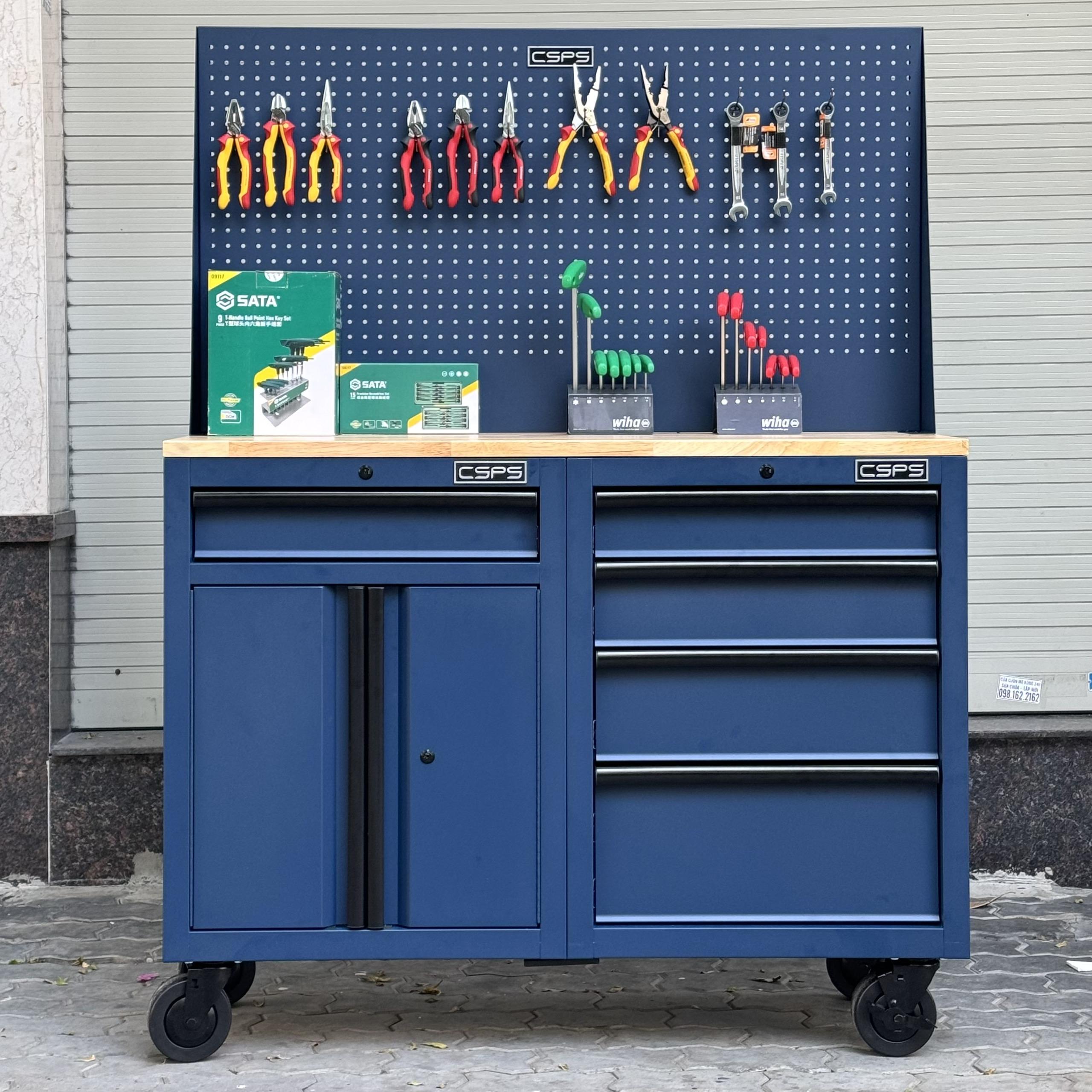 Tủ dụng cụ CSPS 122cm - 05 hộc kéo màu xanh dương kèm vách lưới