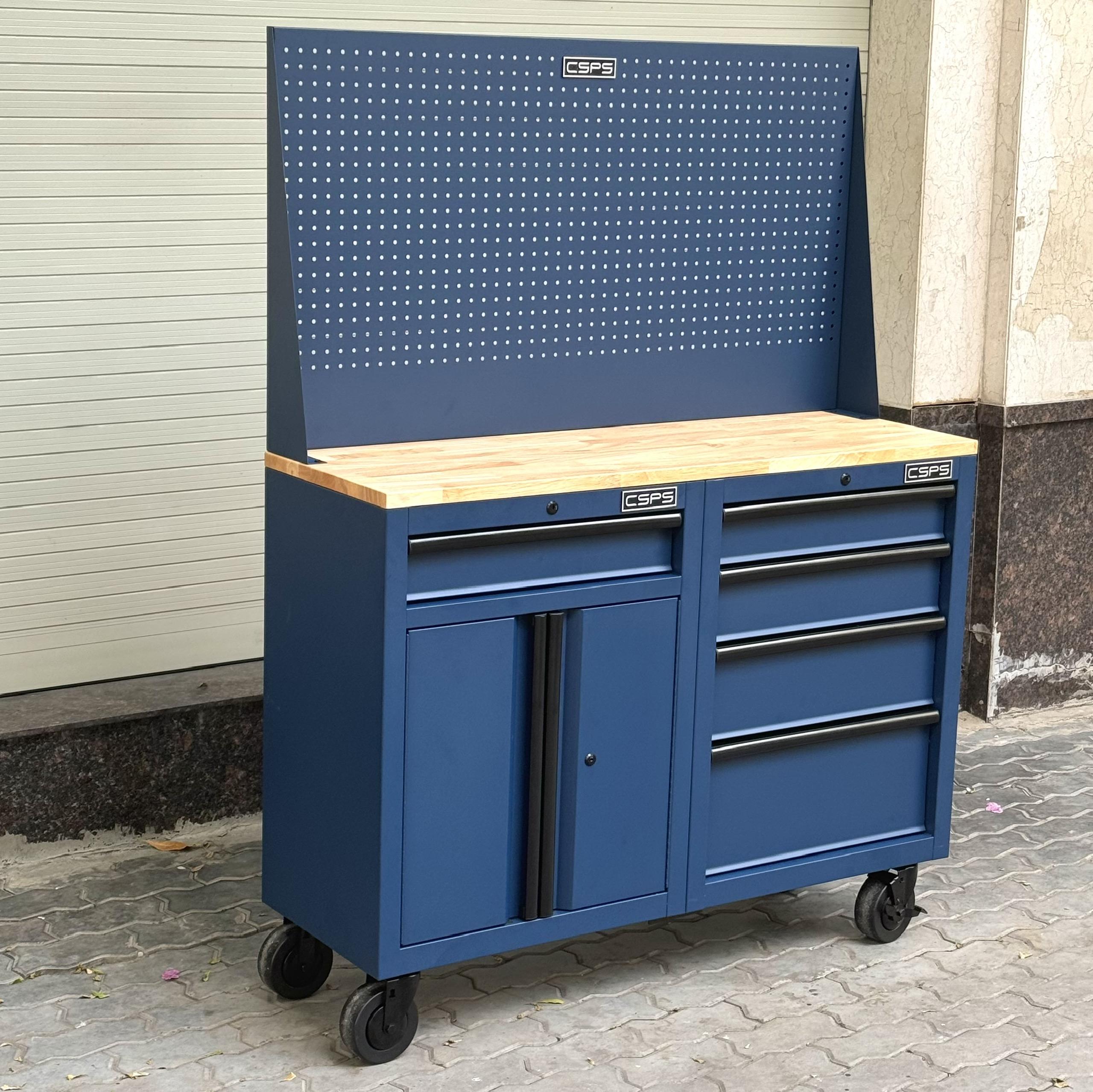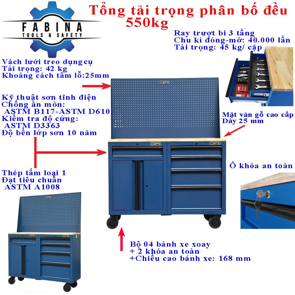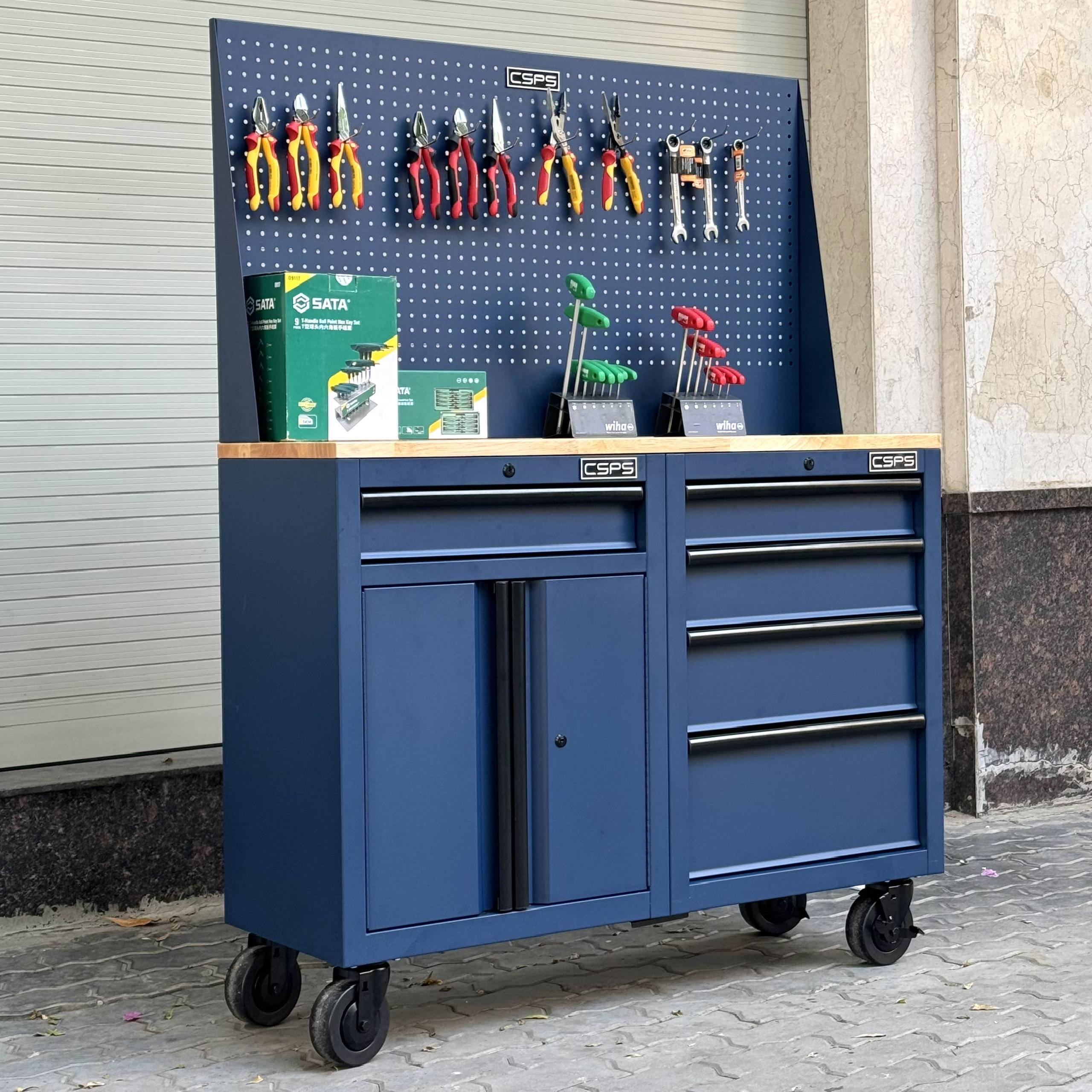 Tủ dụng cụ CSPS 122cm - 05 hộc kéo màu xanh dương kèm vách lưới