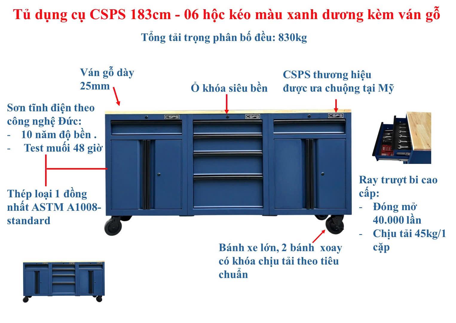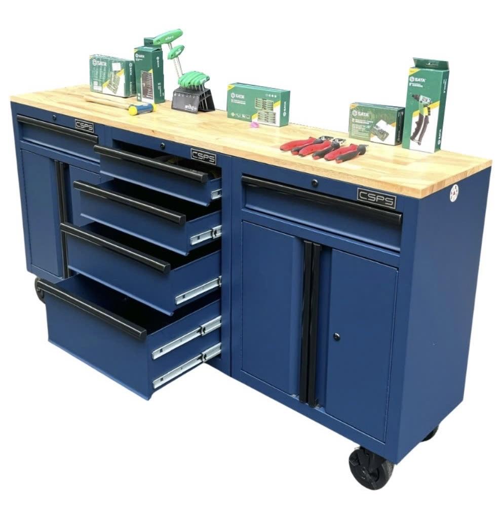 Tủ dụng cụ CSPS 183cm - 06 hộc kéo màu xanh dương mặt ván gỗ