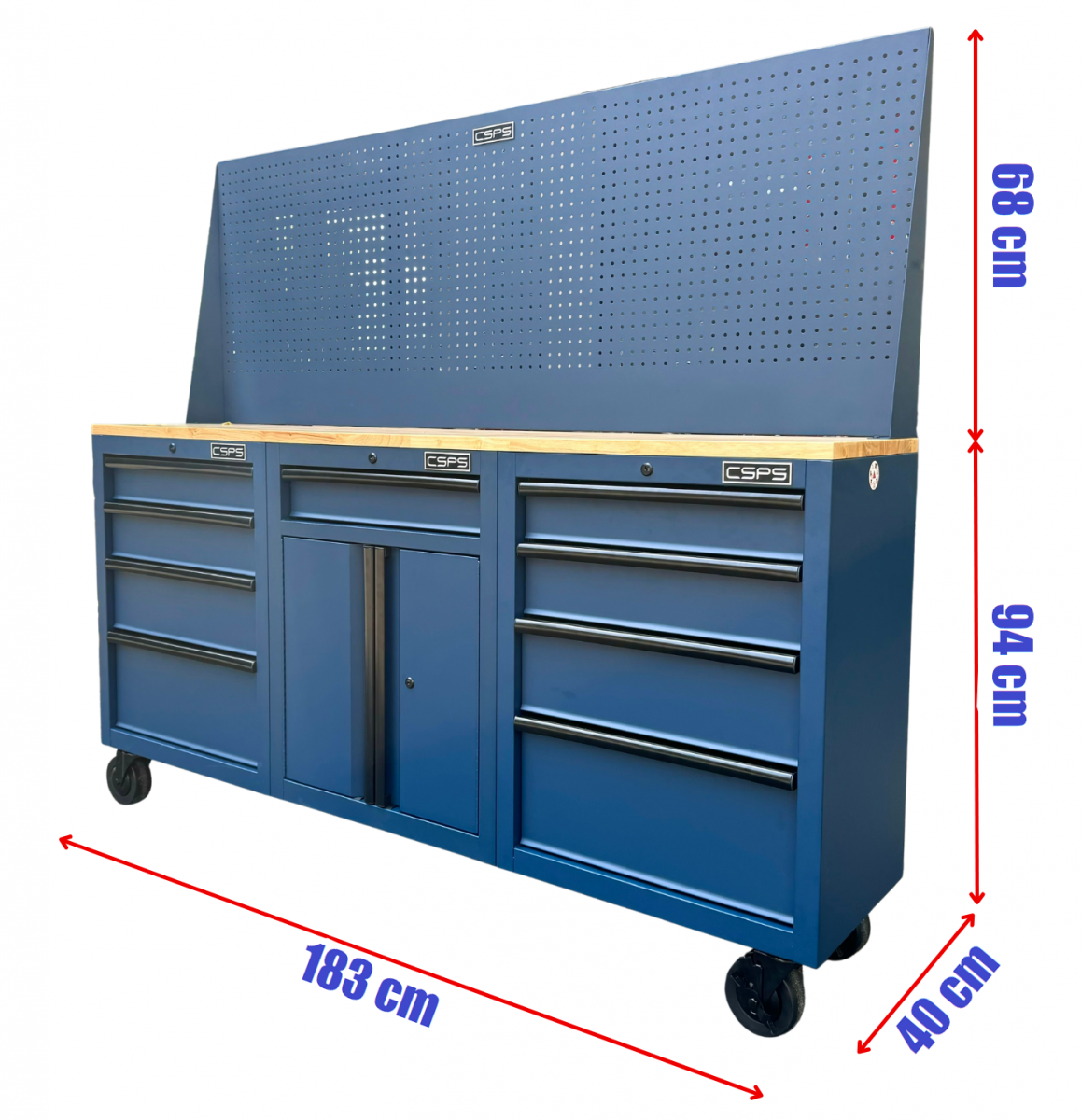 Tủ dụng cụ CSPS 183cm - 09 hộc kéo màu xanh dương kèm vách lưới