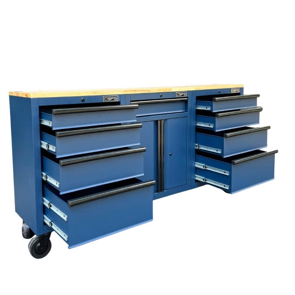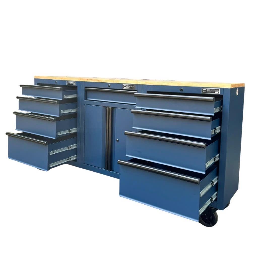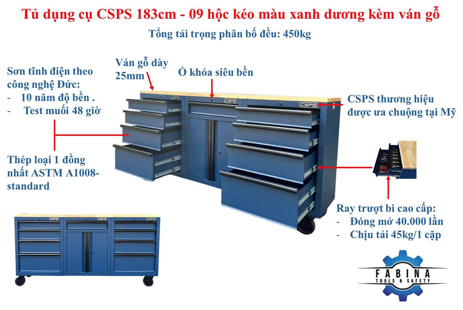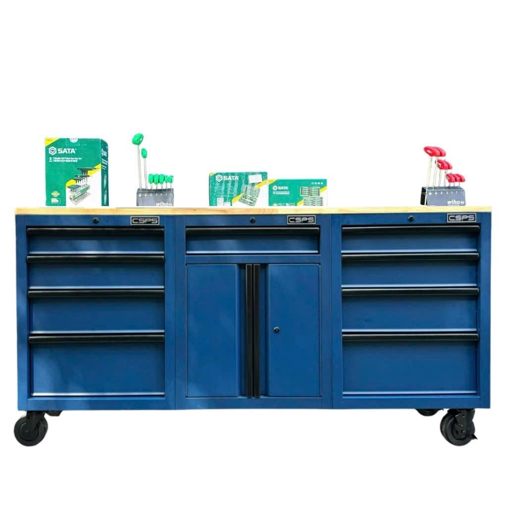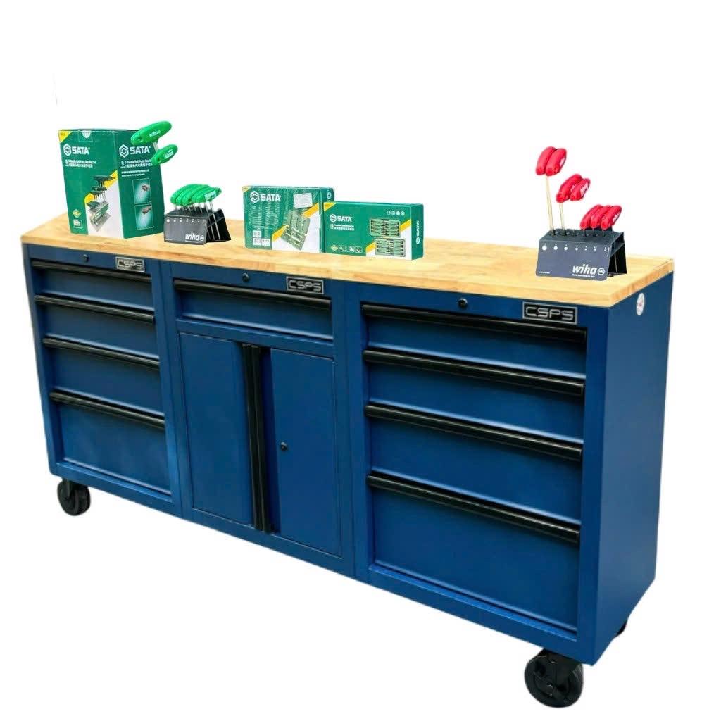 Tủ dụng cụ CSPS 183cm màu xanh dương mặt ván gỗ - 09 hộc kéo
