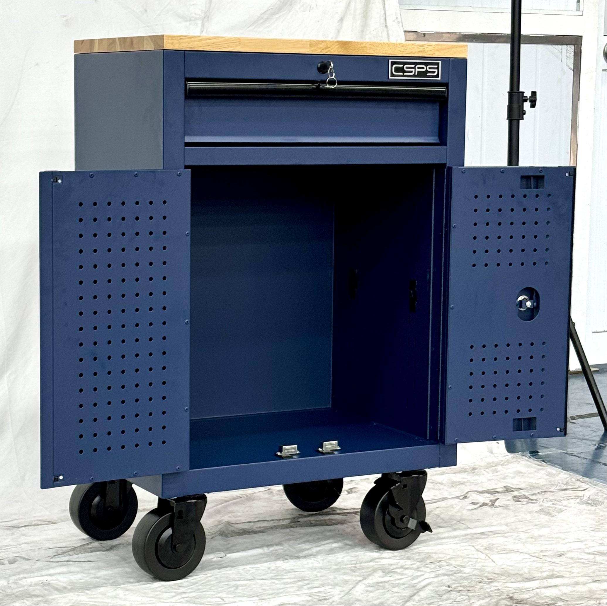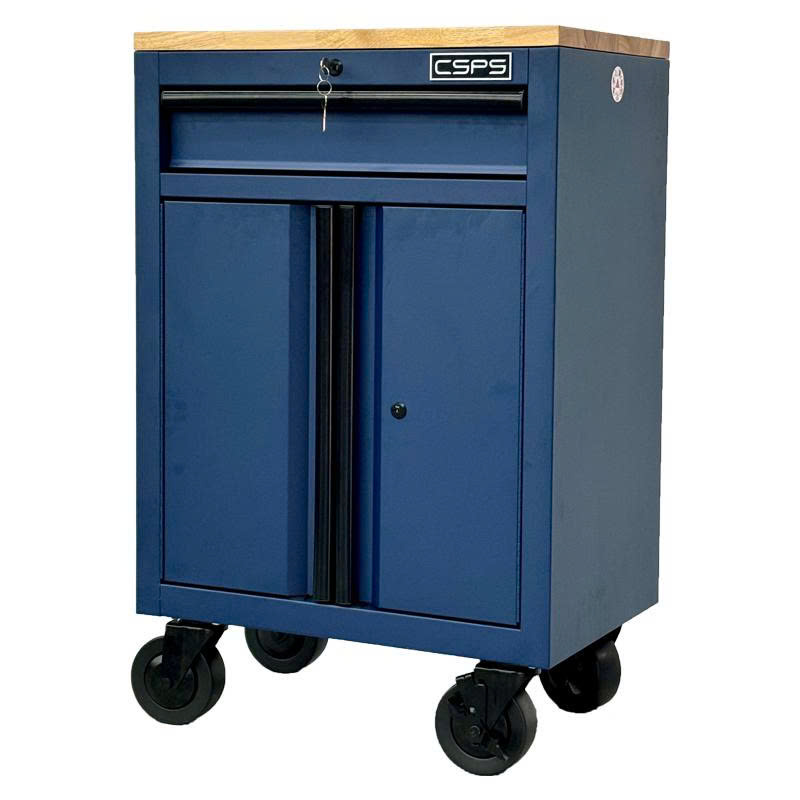 Tủ dụng cụ CSPS 61cm - 01 hộc kéo màu xanh dương kèm bánh xe, ván gỗ