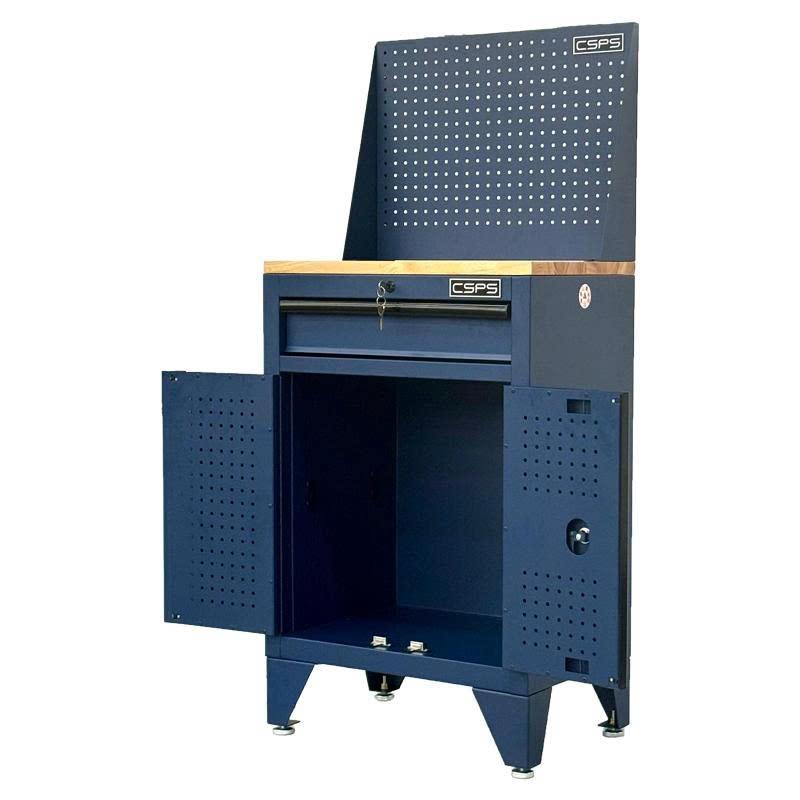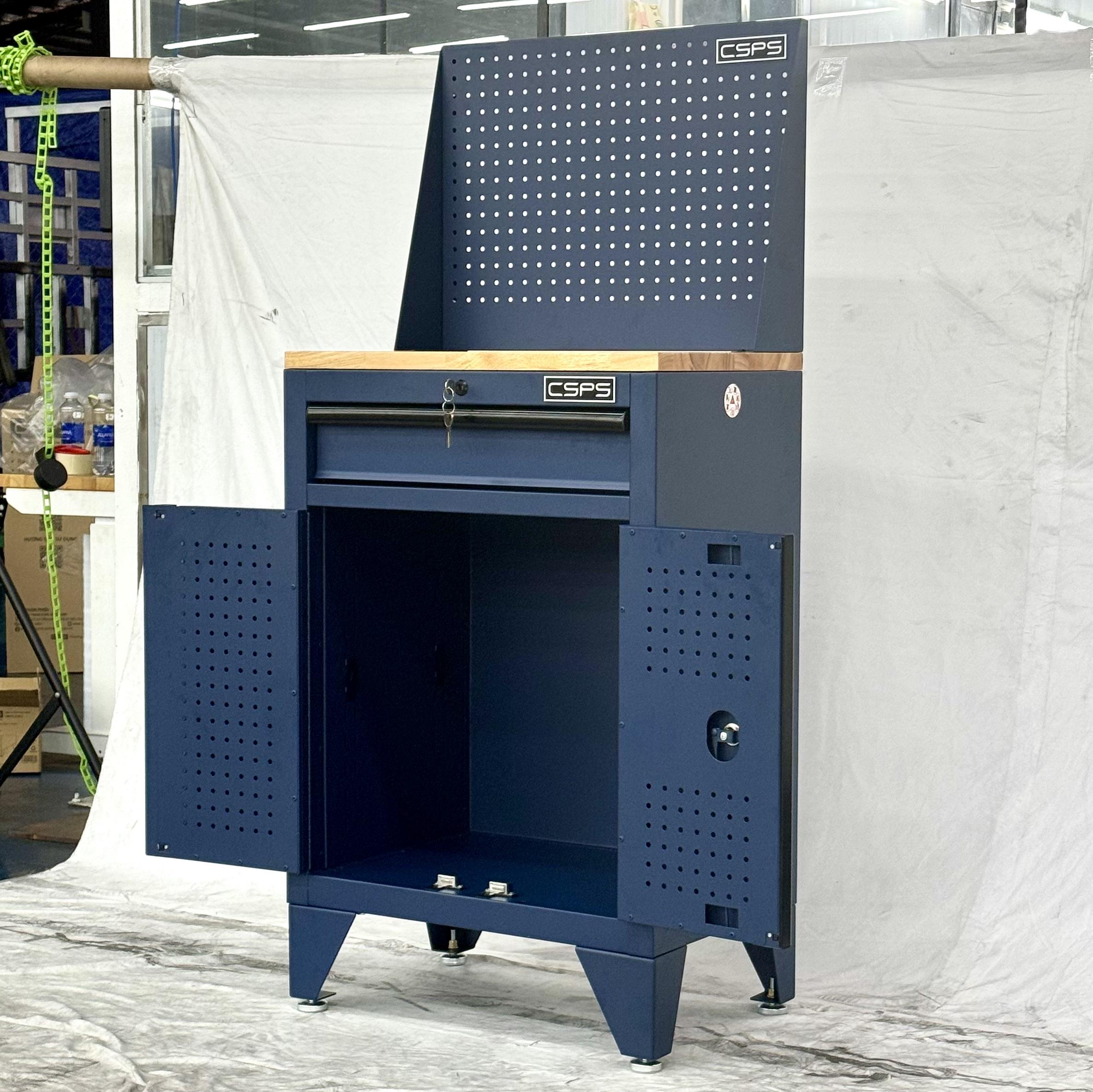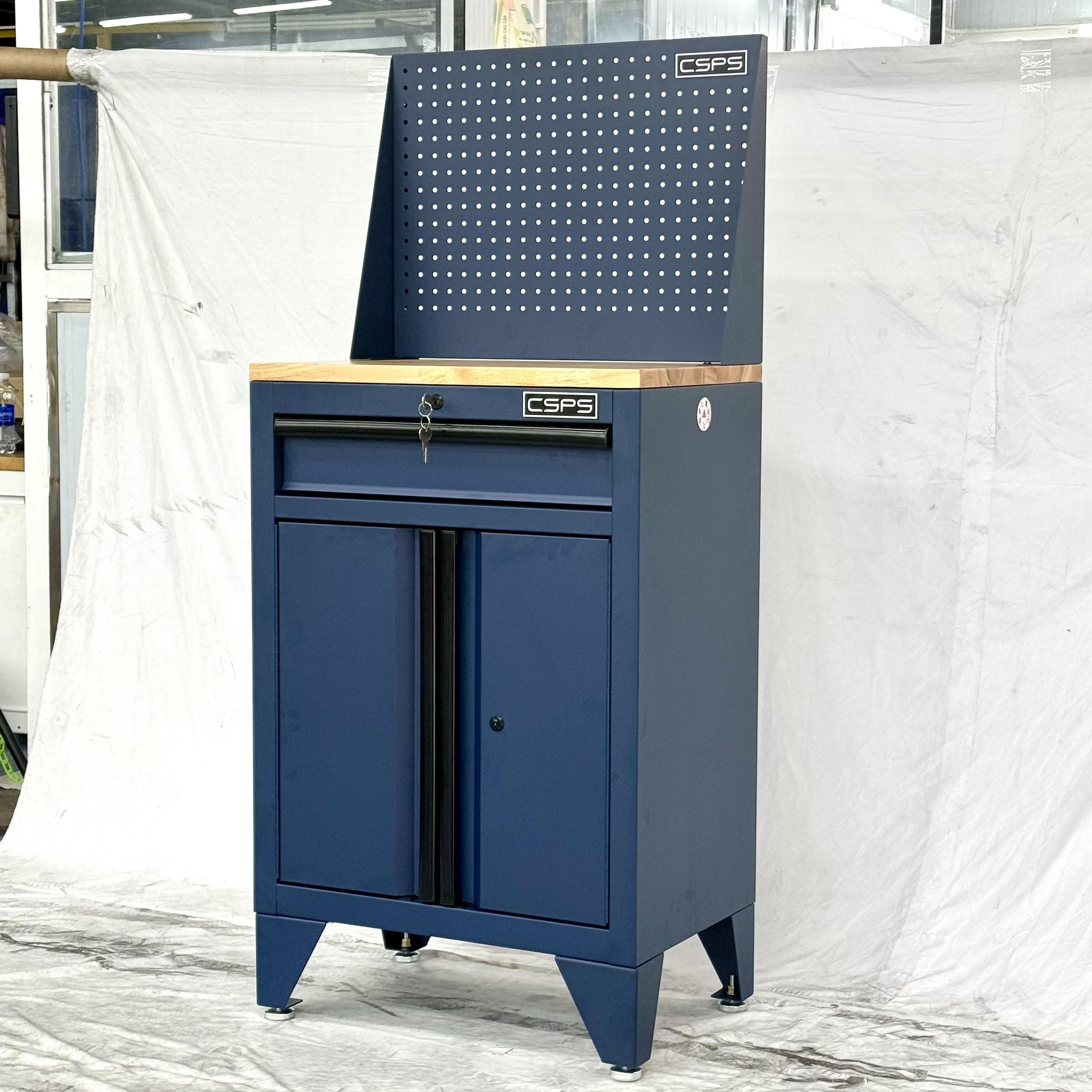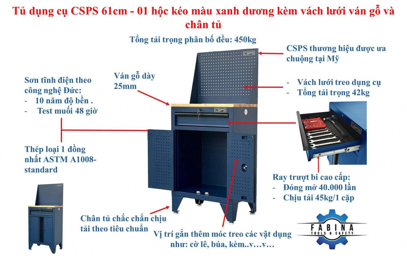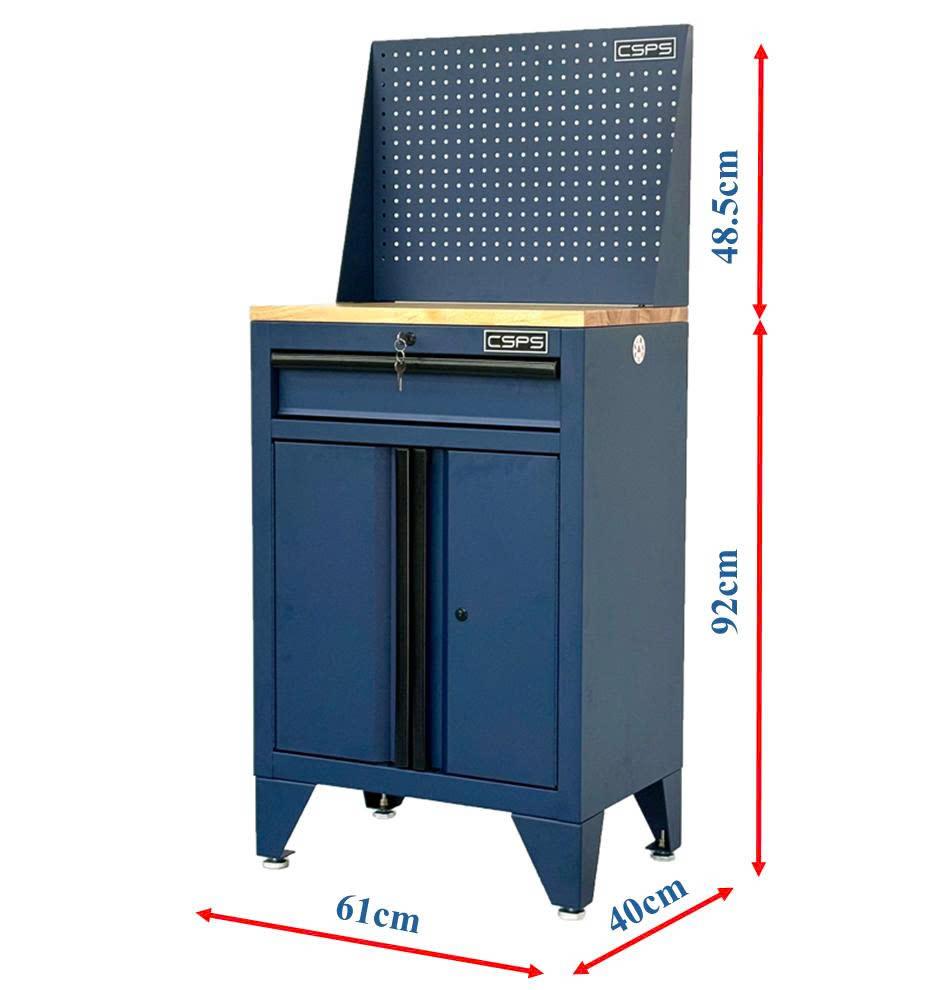 Tủ dụng cụ CSPS 61cm - 01 hộc kéo màu xanh dương kèm vách lưới ván gỗ và chân tủ