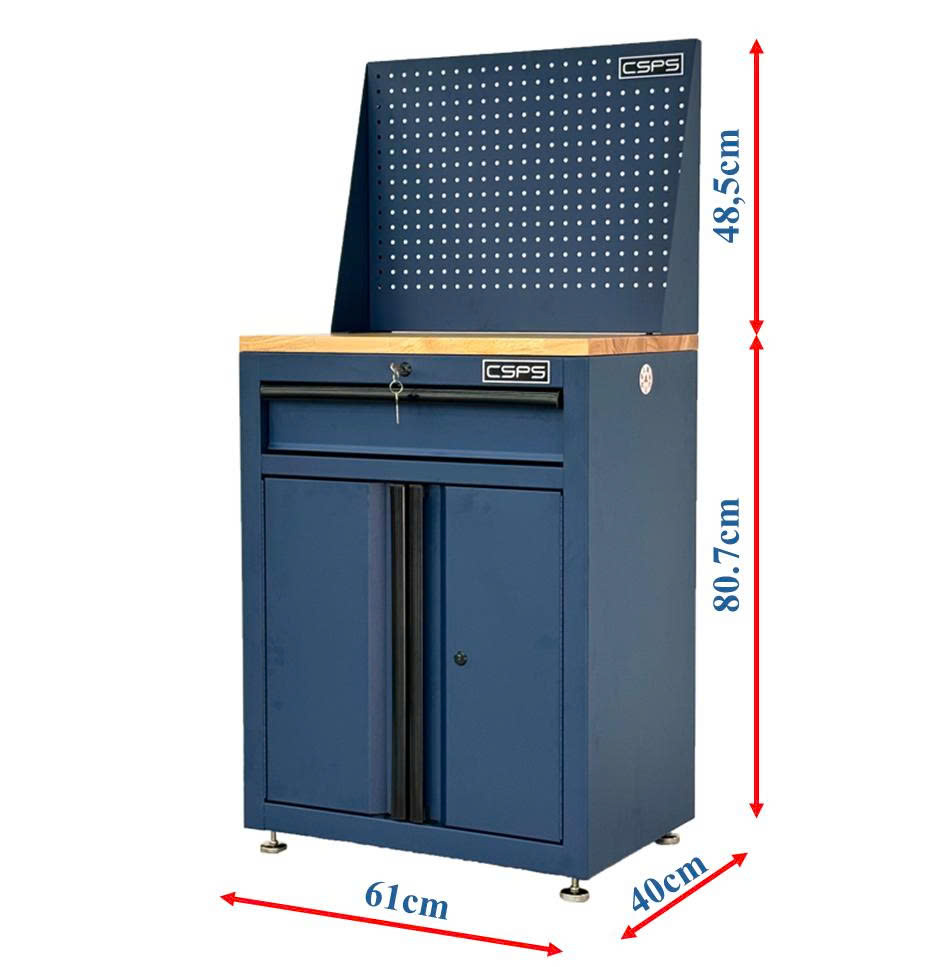Tủ dụng cụ CSPS 61cm - 01 hộc kéo màu xanh dương kèm ván gỗ vách lưới và chân tăng chỉnh