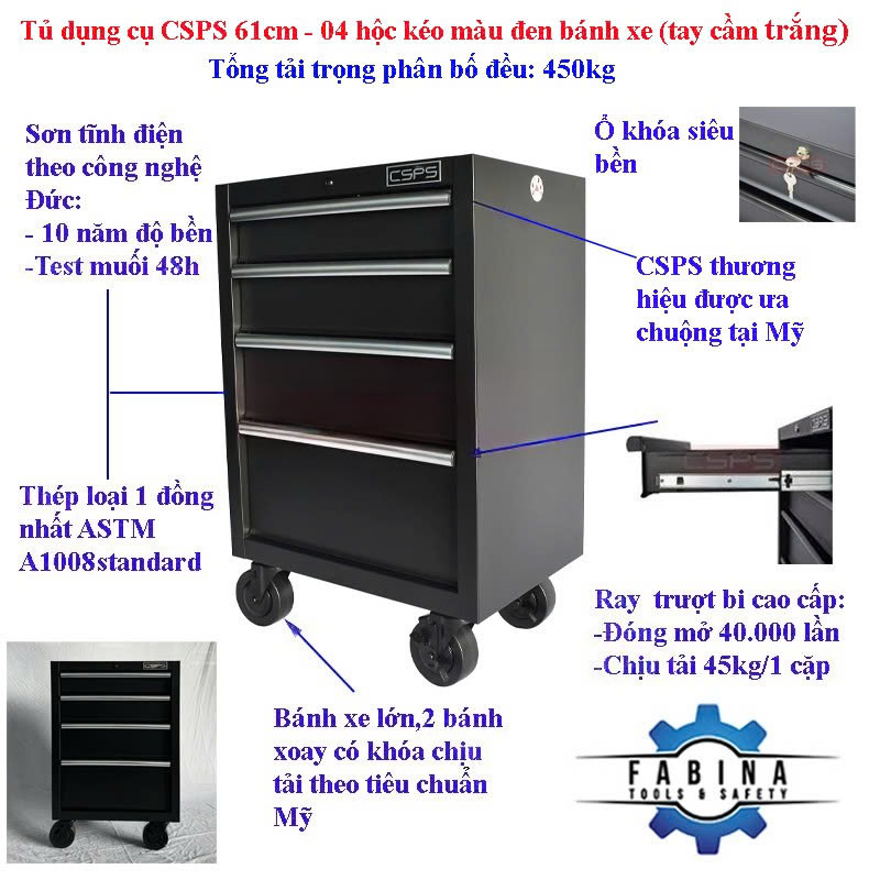 Tủ dụng cụ CSPS 61cm - 04 hộc kéo màu xanh dương kèm bánh xe