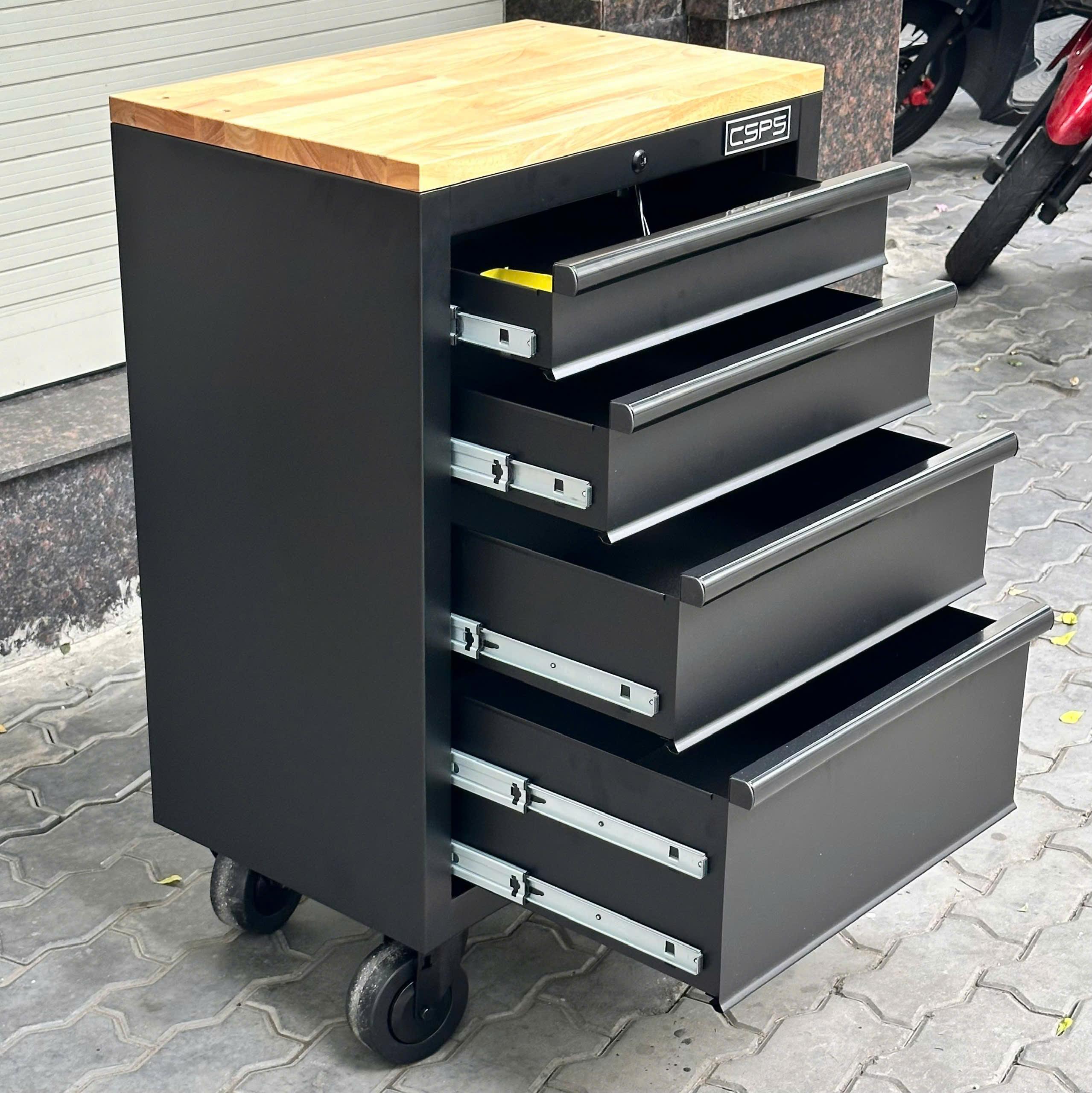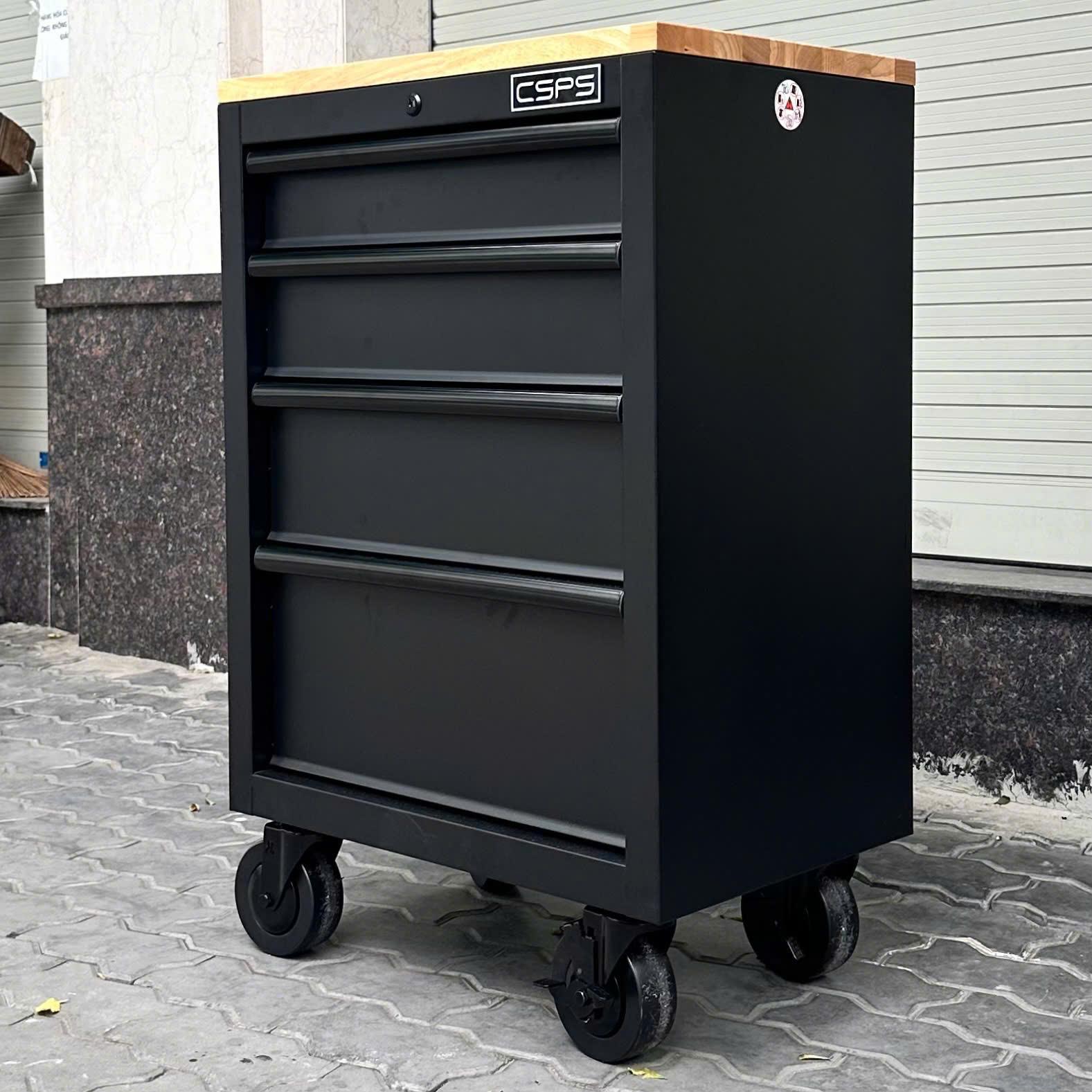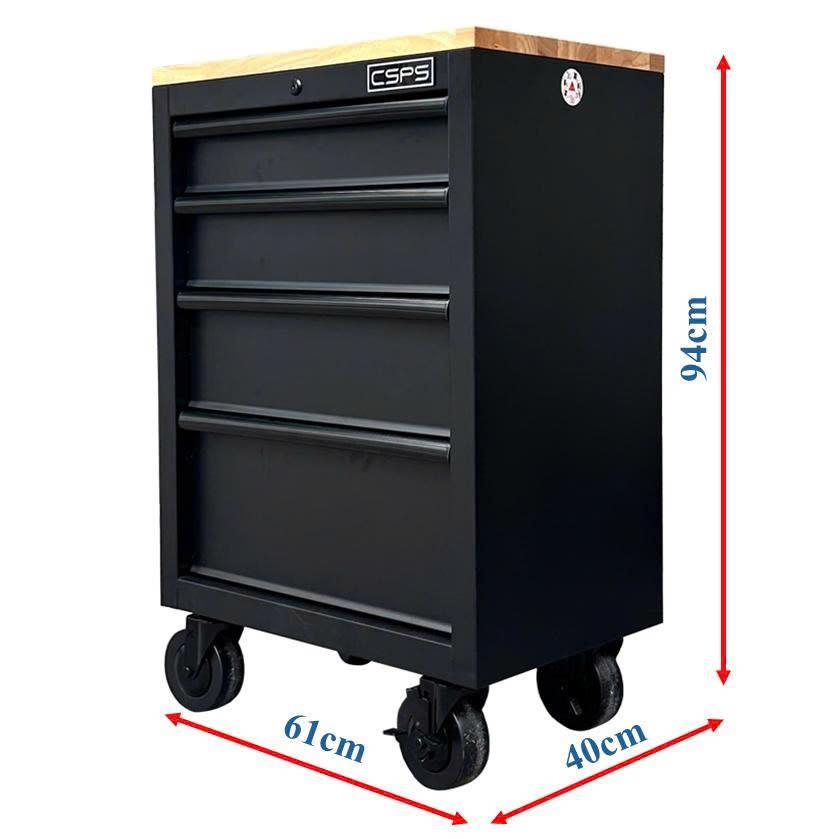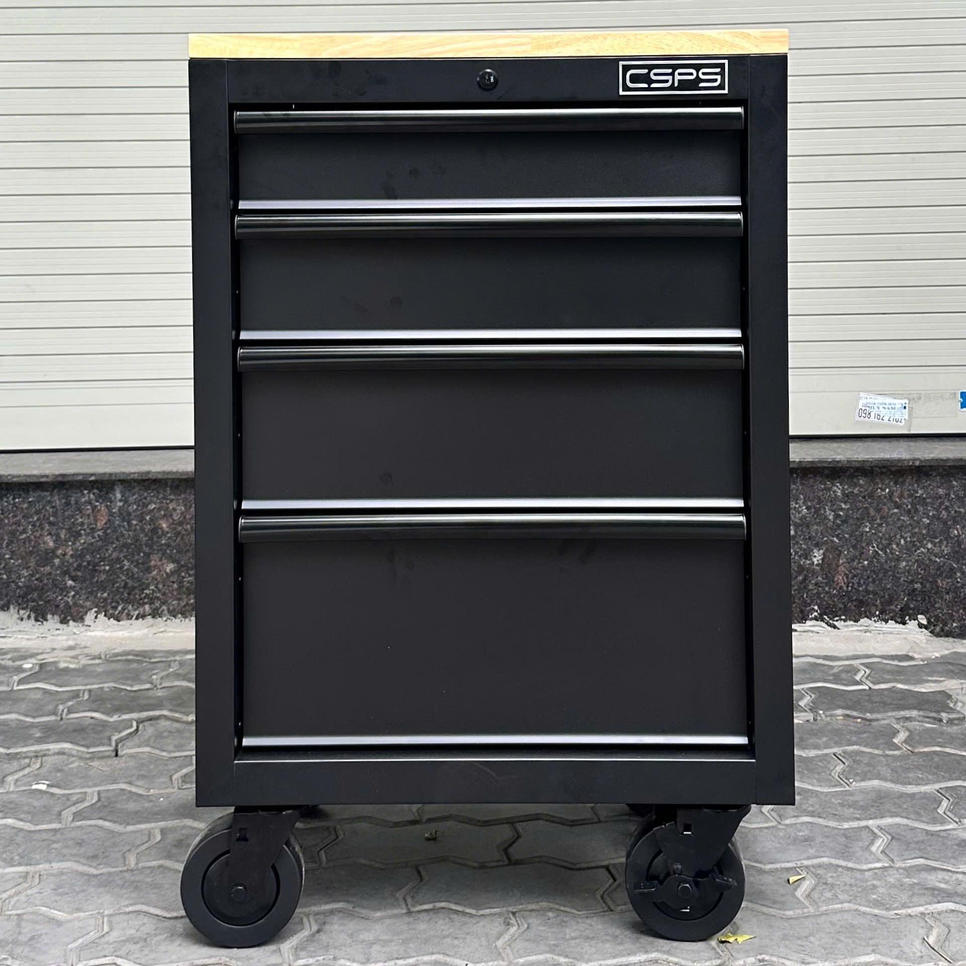 Tủ dụng cụ CSPS 61cm - 04 hộc kéo màu đen kèm bánh xe và ván gỗ