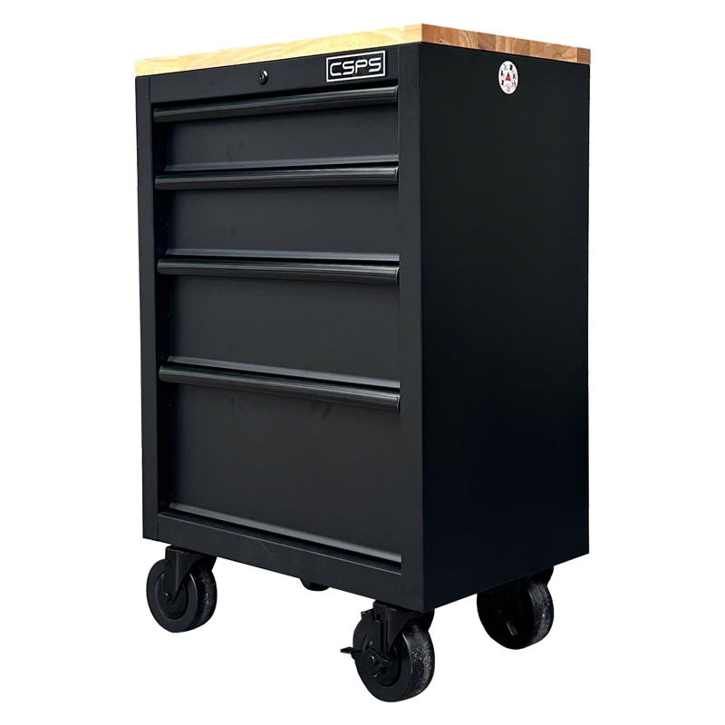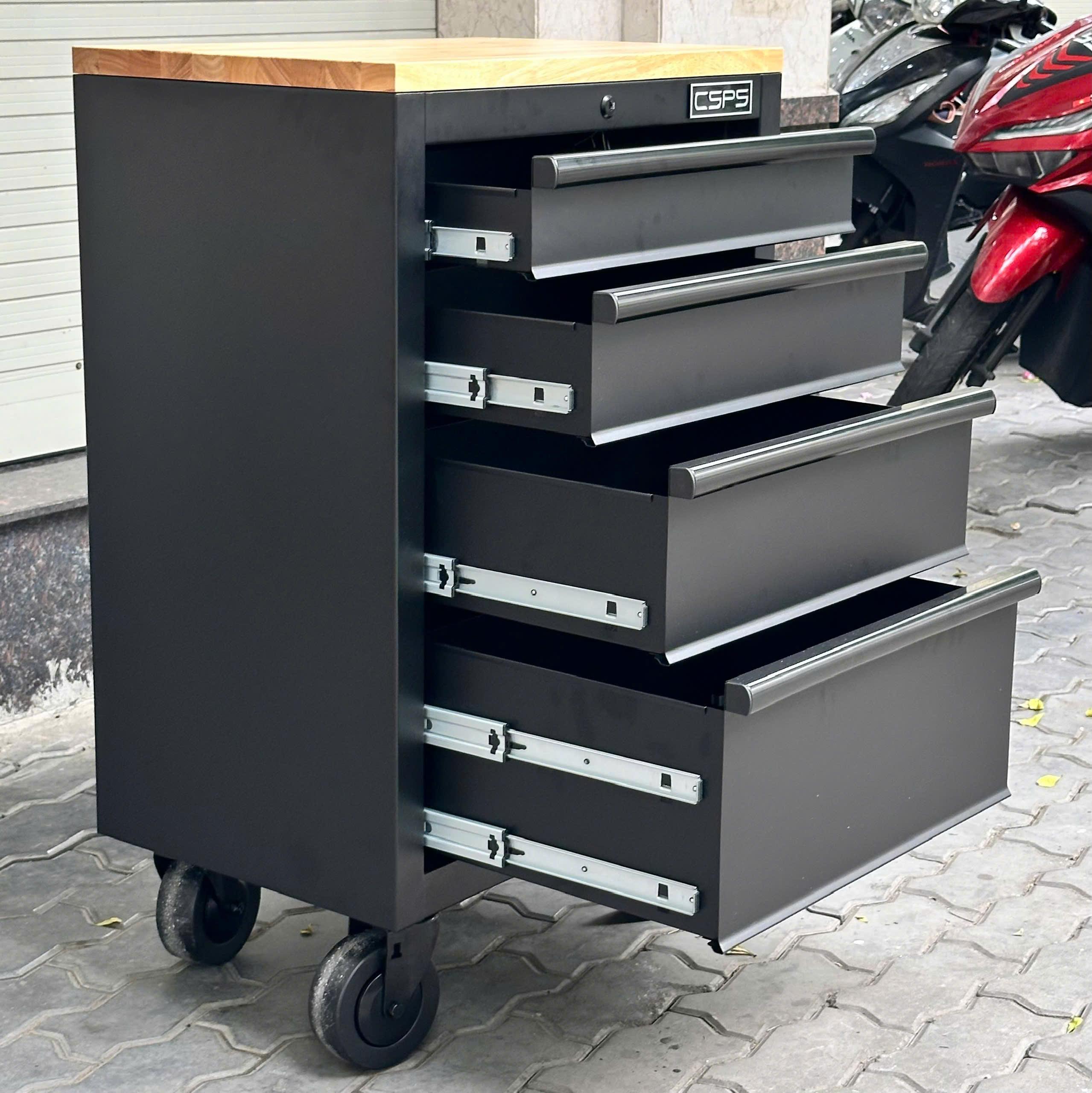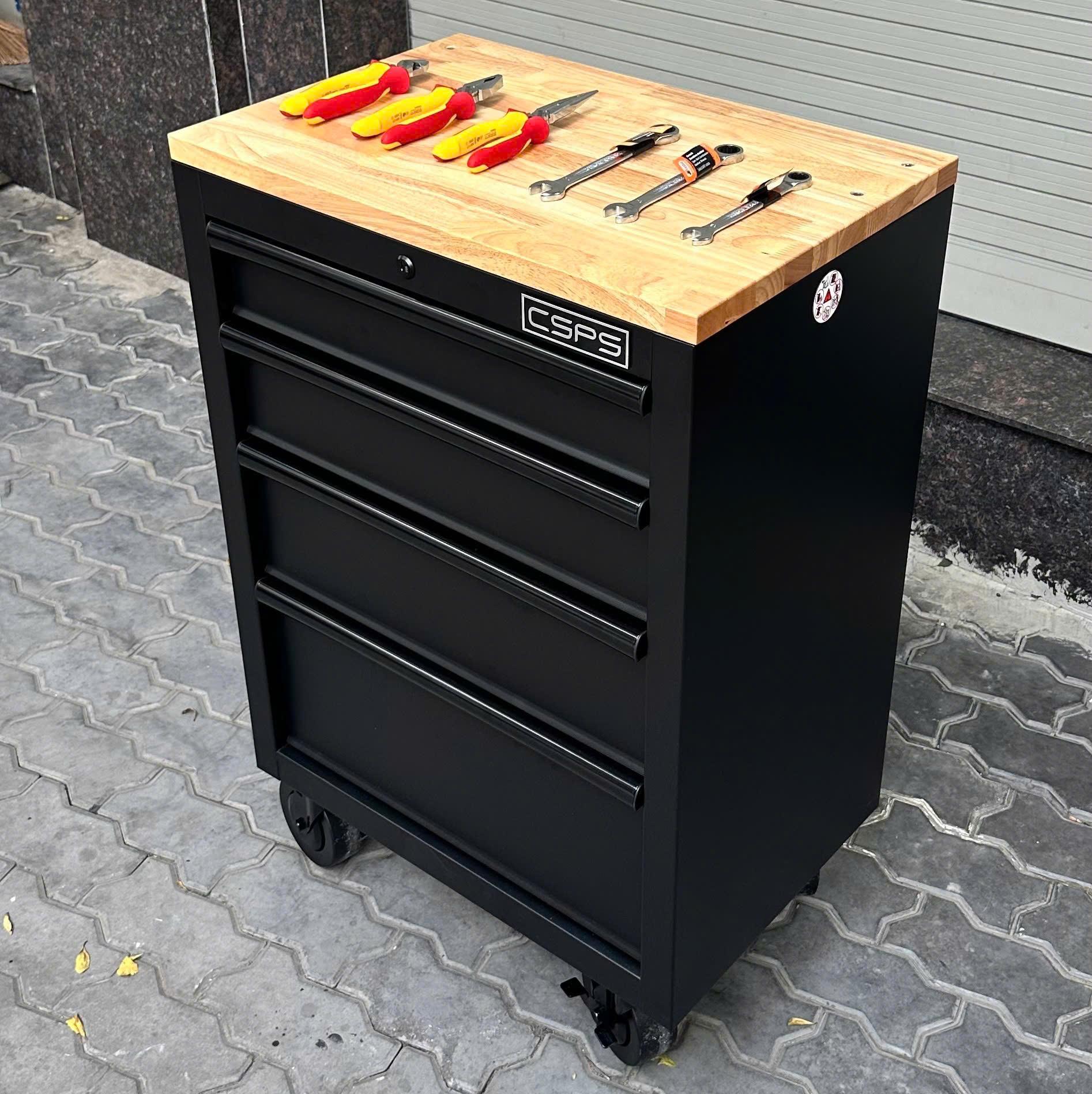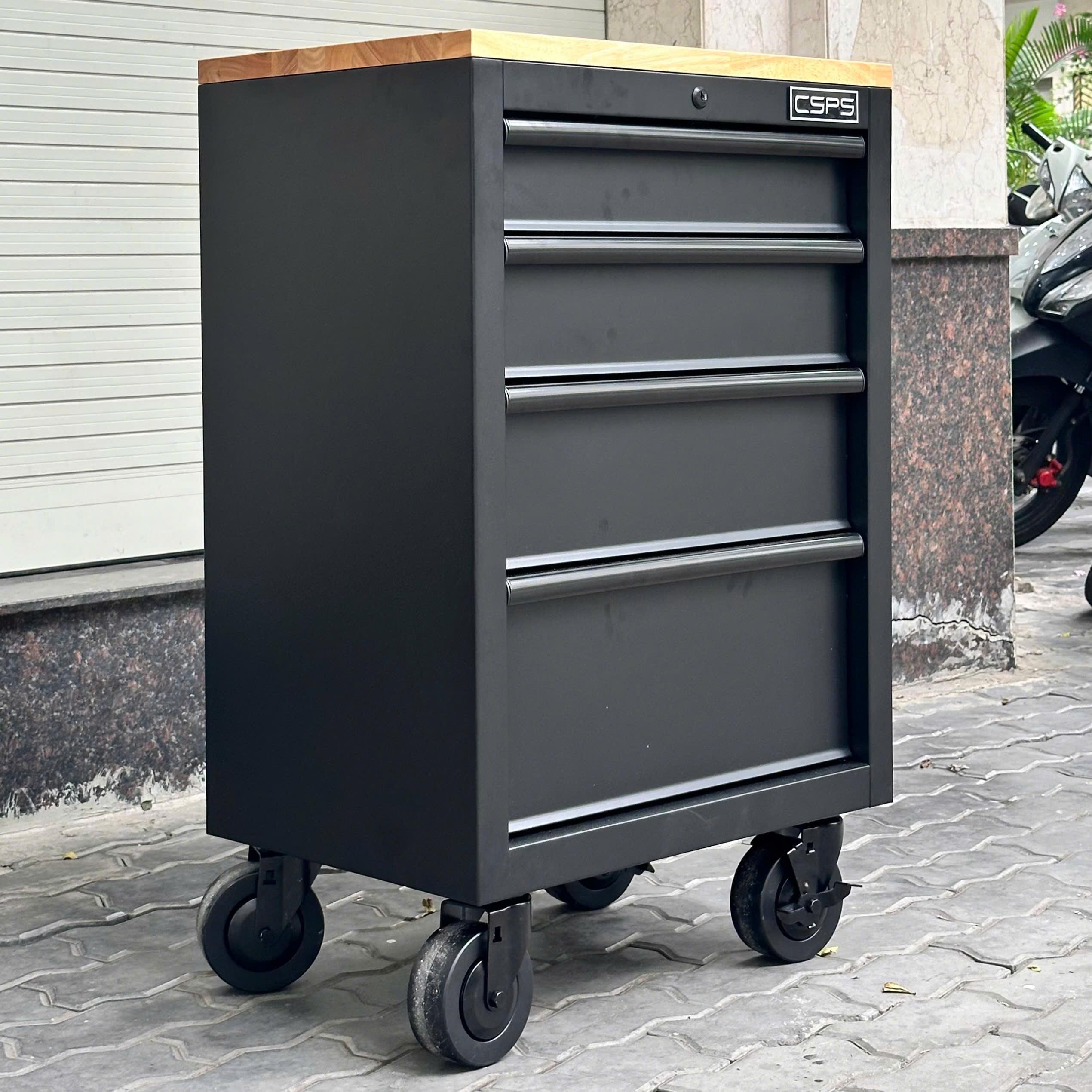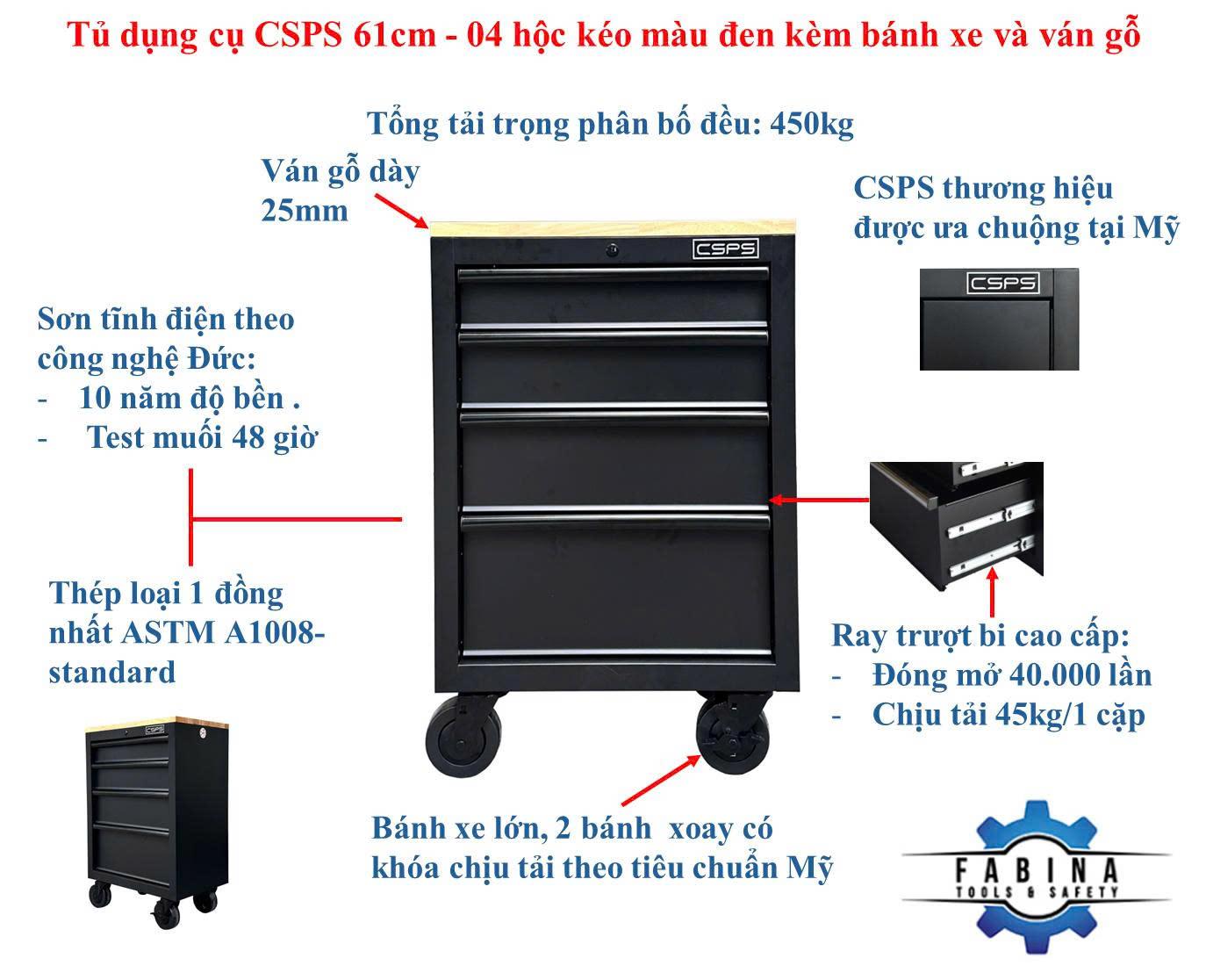 Tủ dụng cụ CSPS 61cm - 04 hộc kéo màu đen kèm bánh xe và ván gỗ