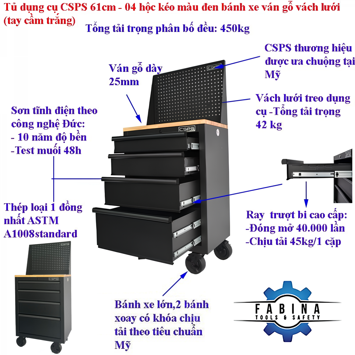 - CSPS được thành lập từ năm 1993 và là công ty OEM hàng đầu thế giới trong lĩnh vực sản xuất tủ đồ nghề. Hiện tại các sản phẩm của CSPS đã có mặt ở thị trường Mỹ, Canada, Úc và Việt Nam. CSPS xây dựng nhà máy tại Việt Nam từ năm 2005 tại Bình Dương với 01 nhà xưởng chuyên sản xuất Tủ dụng cụ, bàn dụng cụ xuất qua Mỹ theo OEM và ODM. Lần lượt các năm 2015, 2016, CSPS mở rộng thêm 02 nhà xưởng nhằm phục vụ cho nhu cầu sản lượng và số lượng đơn đặt hàng ngày càng gia tăng. Năm 2018, CSPS định hướng phát triển sản phẩm tủ đồ nghề, bàn dụng cụ vào thị trường Việt Nam và chọn FABINA Tools & Safety là đối tác chính cho việc phân phối các sản phẩm trên cả nước.