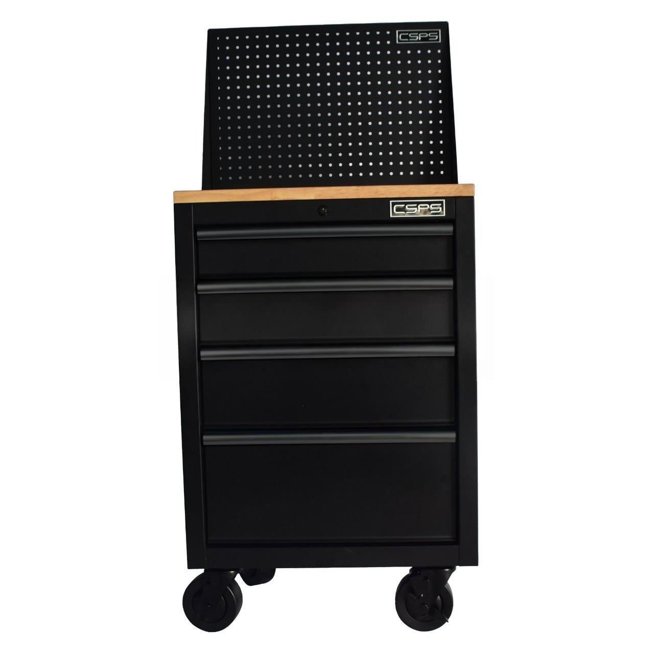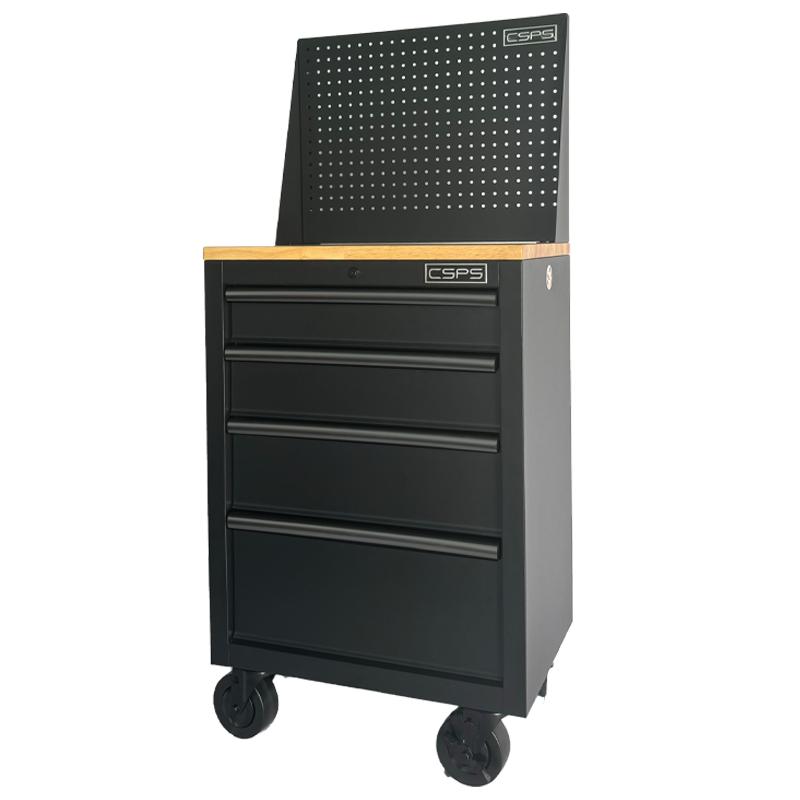 Tủ dụng cụ CSPS 61cm - 04 hộc kéo màu đen mặt ván gỗ kèm vách lưới
