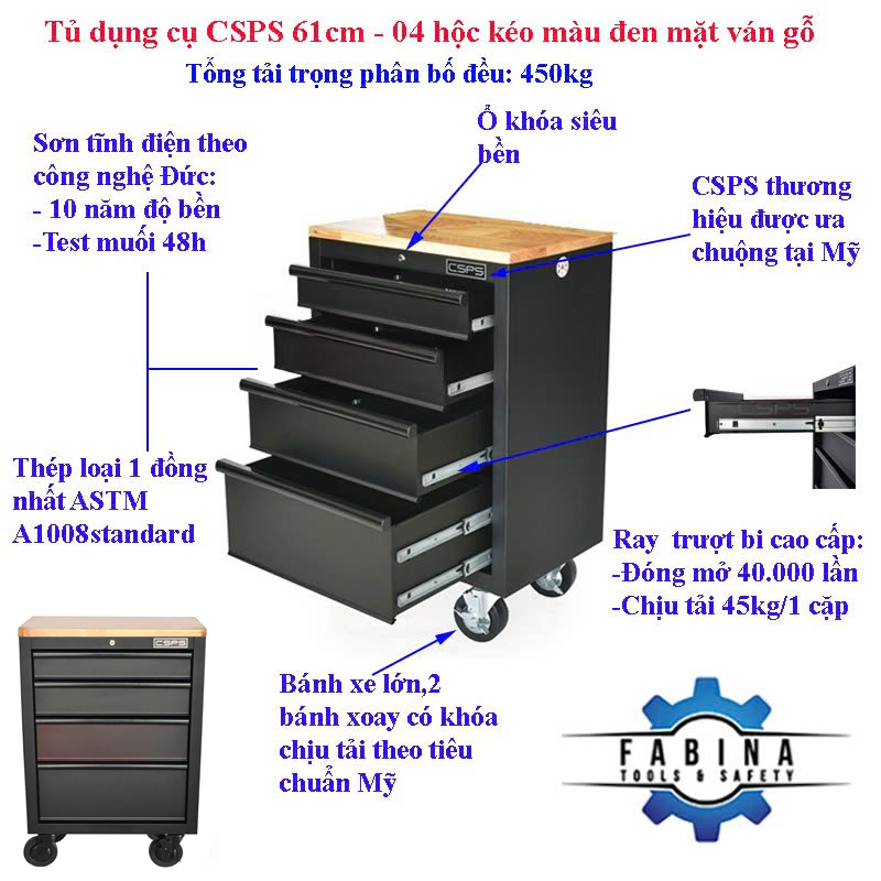 - CSPS được thành lập từ năm 1993 và là công ty OEM hàng đầu thế giới trong lĩnh vực sản xuất tủ đồ nghề. Hiện tại các sản phẩm của CSPS đã có mặt ở thị trường Mỹ, Canada, Úc và Việt Nam. CSPS xây dựng nhà máy tại Việt Nam từ năm 2005 tại Bình Dương với 01 nhà xưởng chuyên sản xuất Tủ dụng cụ, bàn dụng cụ xuất qua Mỹ theo OEM và ODM. Lần lượt các năm 2015, 2016, CSPS mở rộng thêm 02 nhà xưởng nhằm phục vụ cho nhu cầu sản lượng và số lượng đơn đặt hàng ngày càng gia tăng. Năm 2018, CSPS định hướng phát triển sản phẩm tủ đồ nghề, bàn dụng cụ vào thị trường Việt Nam và chọn FABINA Tools & Safety là đối tác chính cho việc phân phối các sản phẩm trên cả nước.