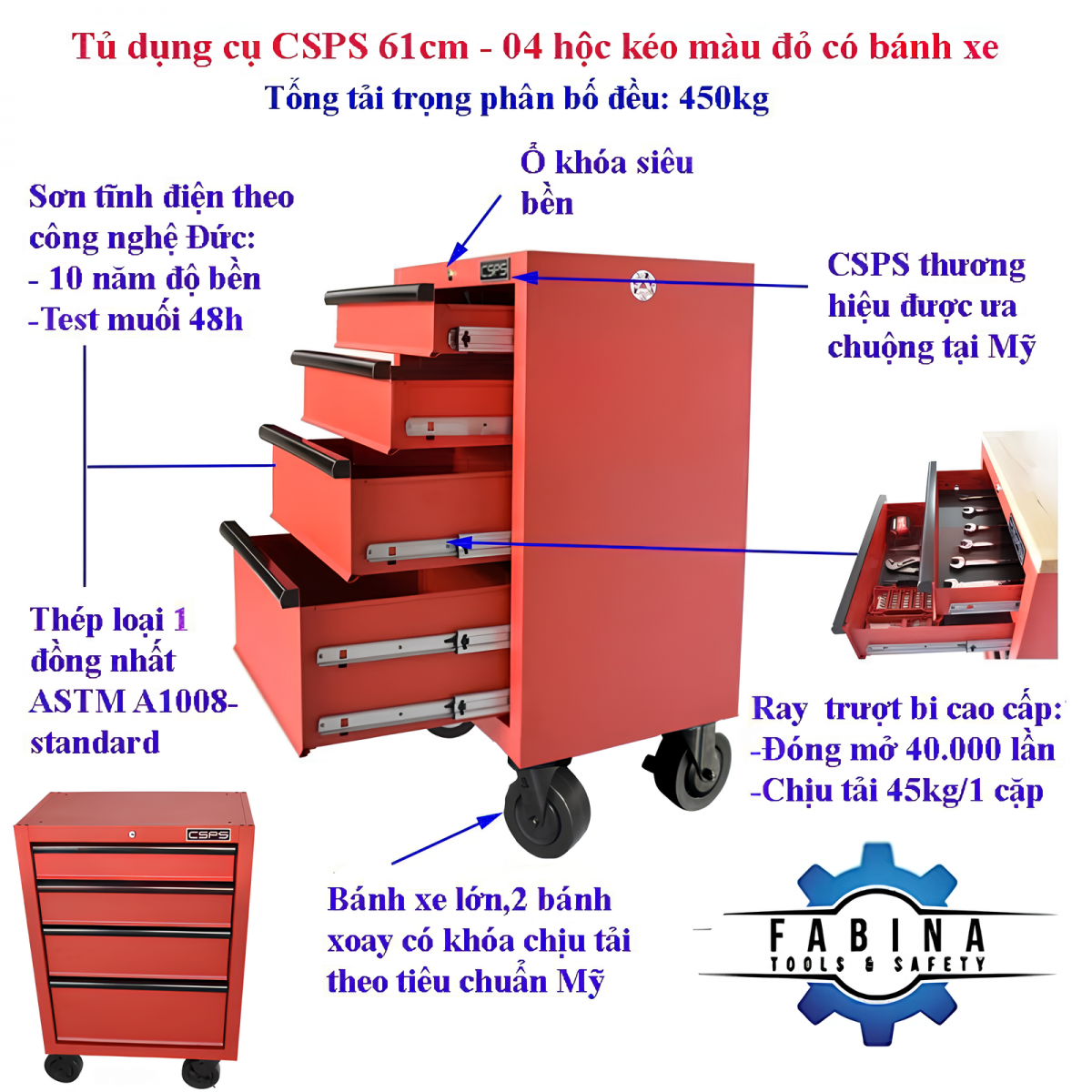 - CSPS được thành lập từ năm 1993 và là công ty OEM hàng đầu thế giới trong lĩnh vực sản xuất tủ đồ nghề. Hiện tại các sản phẩm của CSPS đã có mặt ở thị trường Mỹ, Canada, Úc và Việt Nam. CSPS xây dựng nhà máy tại Việt Nam từ năm 2005 tại Bình Dương với 01 nhà xưởng chuyên sản xuất Tủ dụng cụ, bàn dụng cụ xuất qua Mỹ theo OEM và ODM. Lần lượt các năm 2015, 2016, CSPS mở rộng thêm 02 nhà xưởng nhằm phục vụ cho nhu cầu sản lượng và số lượng đơn đặt hàng ngày càng gia tăng. Năm 2018, CSPS định hướng phát triển sản phẩm tủ đồ nghề, bàn dụng cụ vào thị trường Việt Nam và chọn FABINA Tools & Safety là đối tác chính cho việc phân phối các sản phẩm trên cả nước.