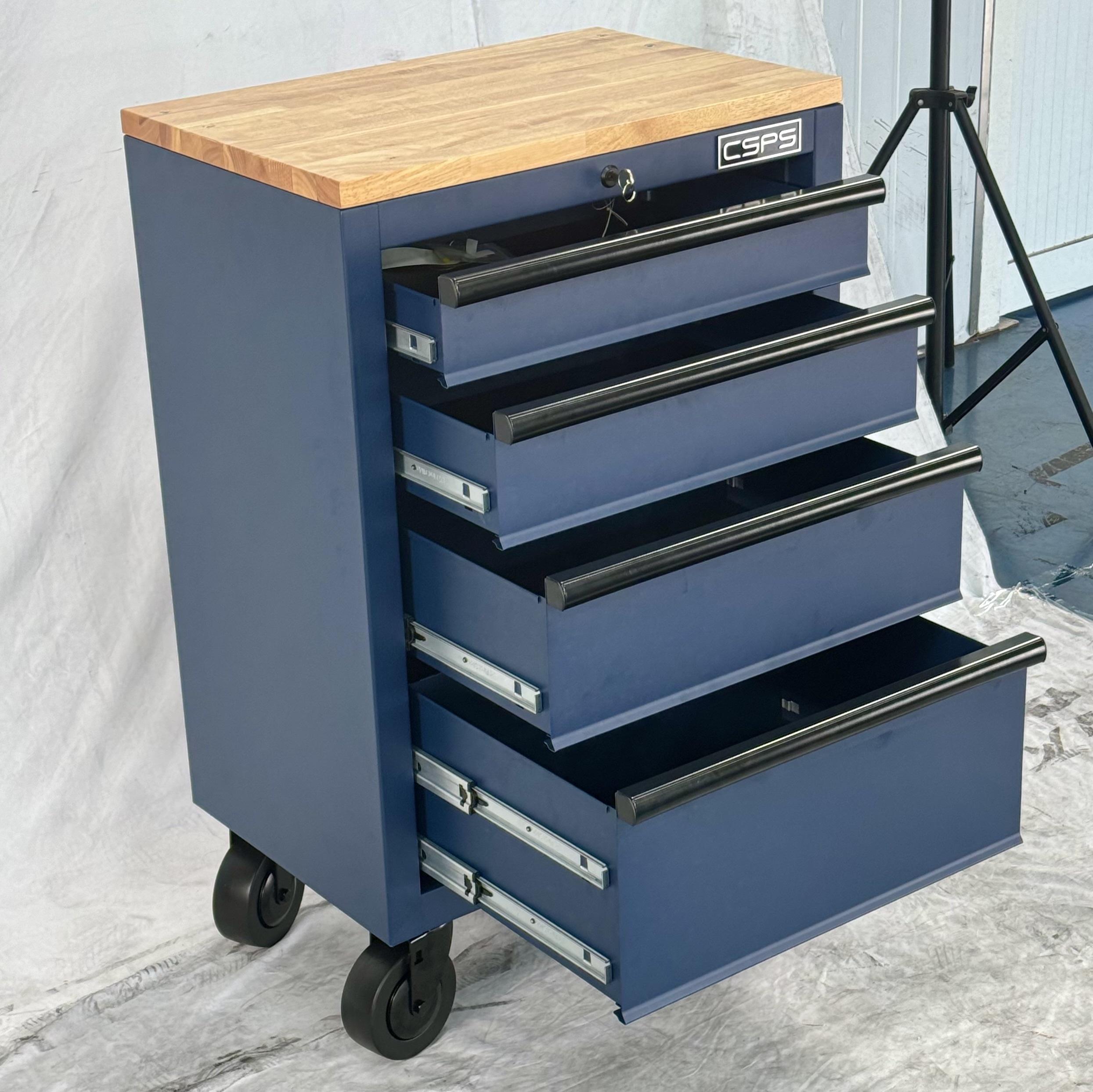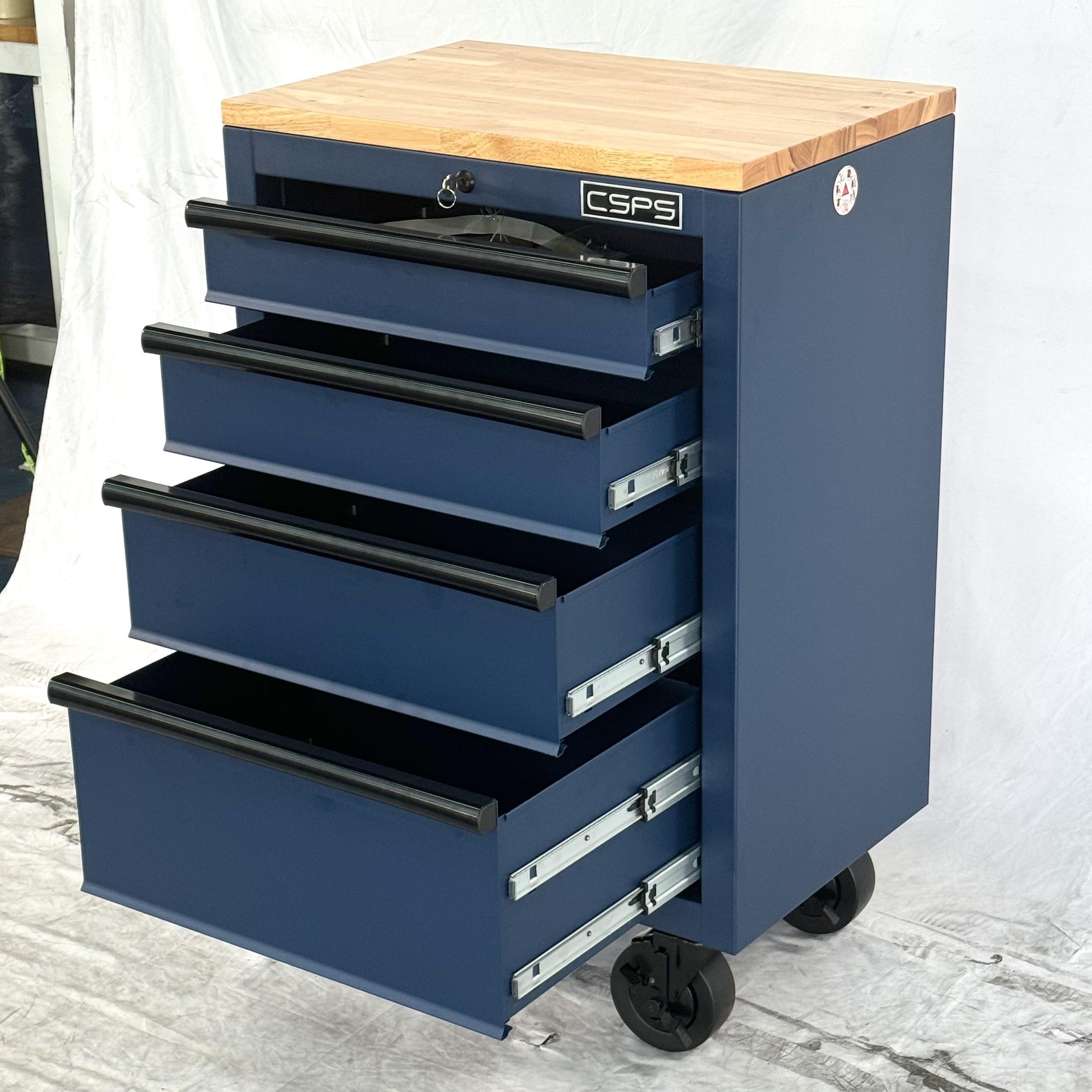 Tủ dụng cụ CSPS 61cm - 04 hộc kéo màu xanh dương kèm bánh xe và ván gỗ