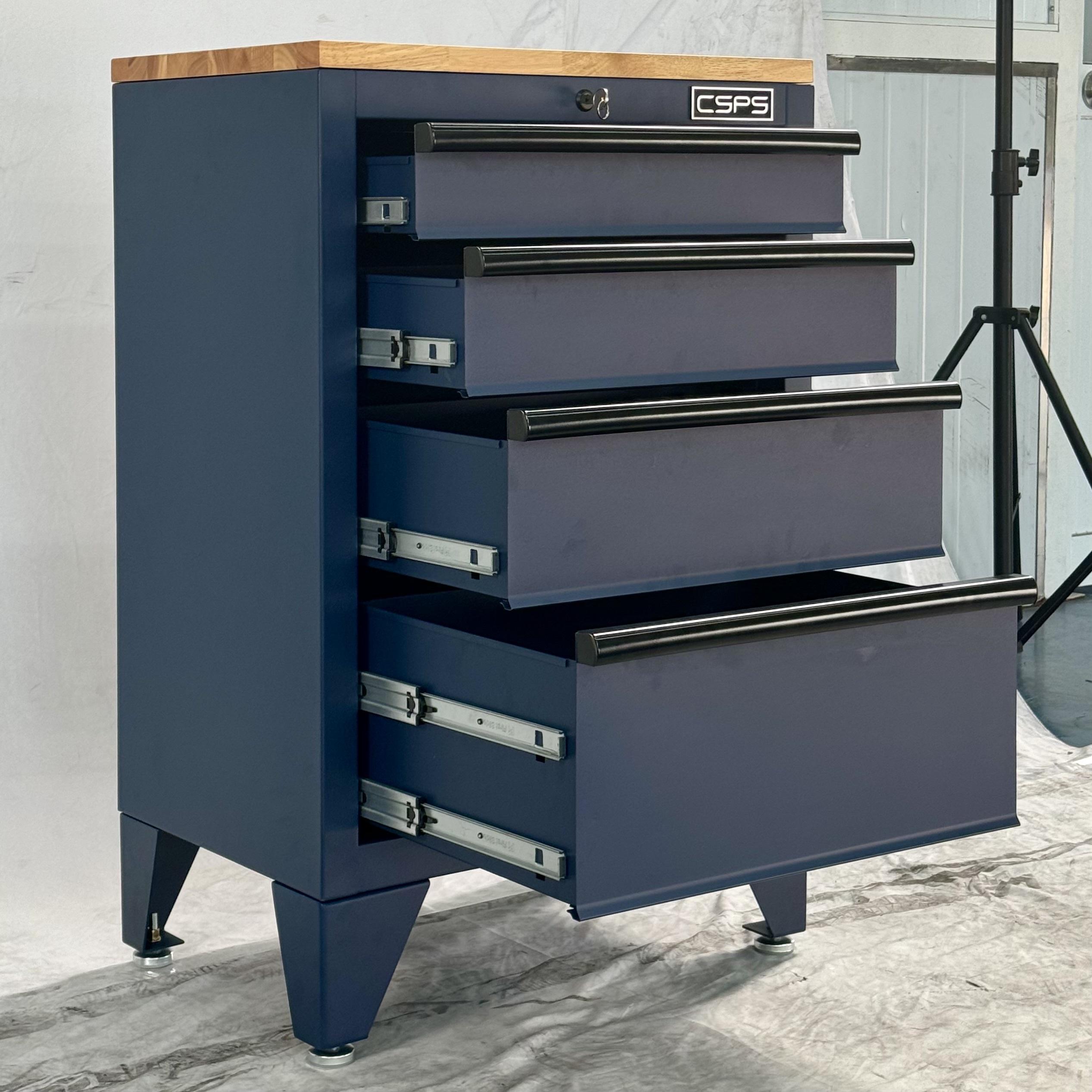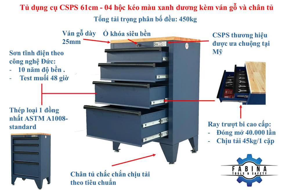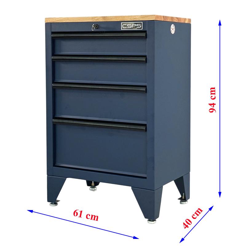 Tủ dụng cụ CSPS 61cm - 04 hộc kéo màu xanh dương kèm ván gỗ và chân tủ