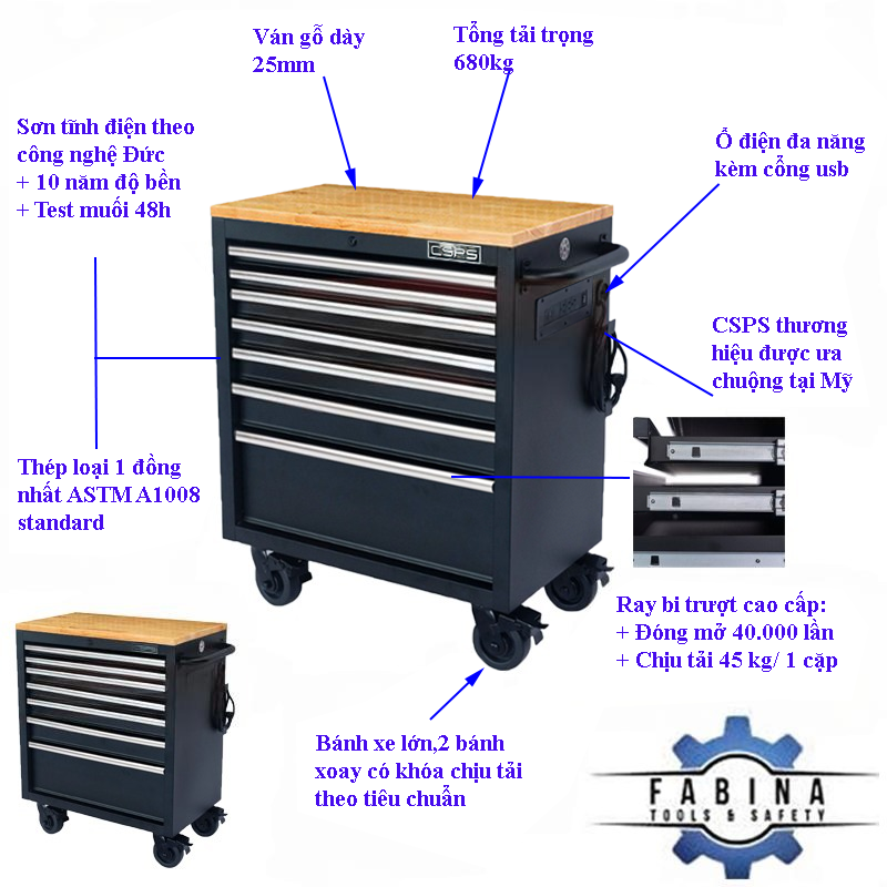 - CSPS được thành lập từ năm 1993 và là công ty OEM hàng đầu thế giới trong lĩnh vực sản xuất tủ đồ nghề. Hiện tại các sản phẩm của CSPC đã có mặt ở thị trường Mỹ, Canada, Úc và Việt Nam. CSPSxây dựng nhà máy tại Việt Nam từ năm 2005 tại Bình Dương với 01 nhà xưởng chuyên sản xuất Tủ dụng cụ, bàn dụng cụ xuất qua Mỹ theo OEM và ODM. Lần lượt các năm 2015, 2016, CSPS mở rộng thêm 02 nhà xưởng nhằm phục vụ cho nhu cầu sản lượng và số lượng đơn đặt hàng ngày càng gia tăng. Năm 2018, CSPS định hướng phát triển sản phẩm tủ đồ nghề, bàn dụng cụ vào thị trường Việt Nam và chọn FABINA Tools & Safety là đối tác chính cho việc phân phối các sản phẩm trên cả nước.