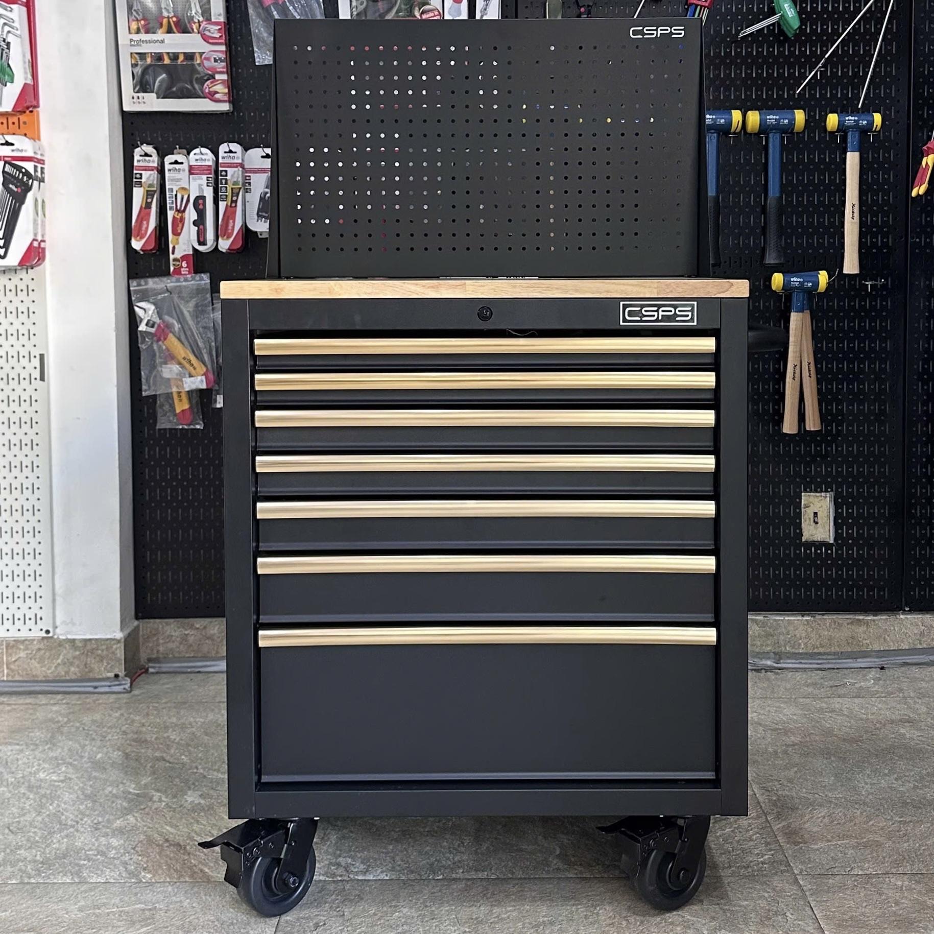 Tủ dụng cụ CSPS 76cm - 07 hộc kéo tay cầm vàng kèm vách lưới
