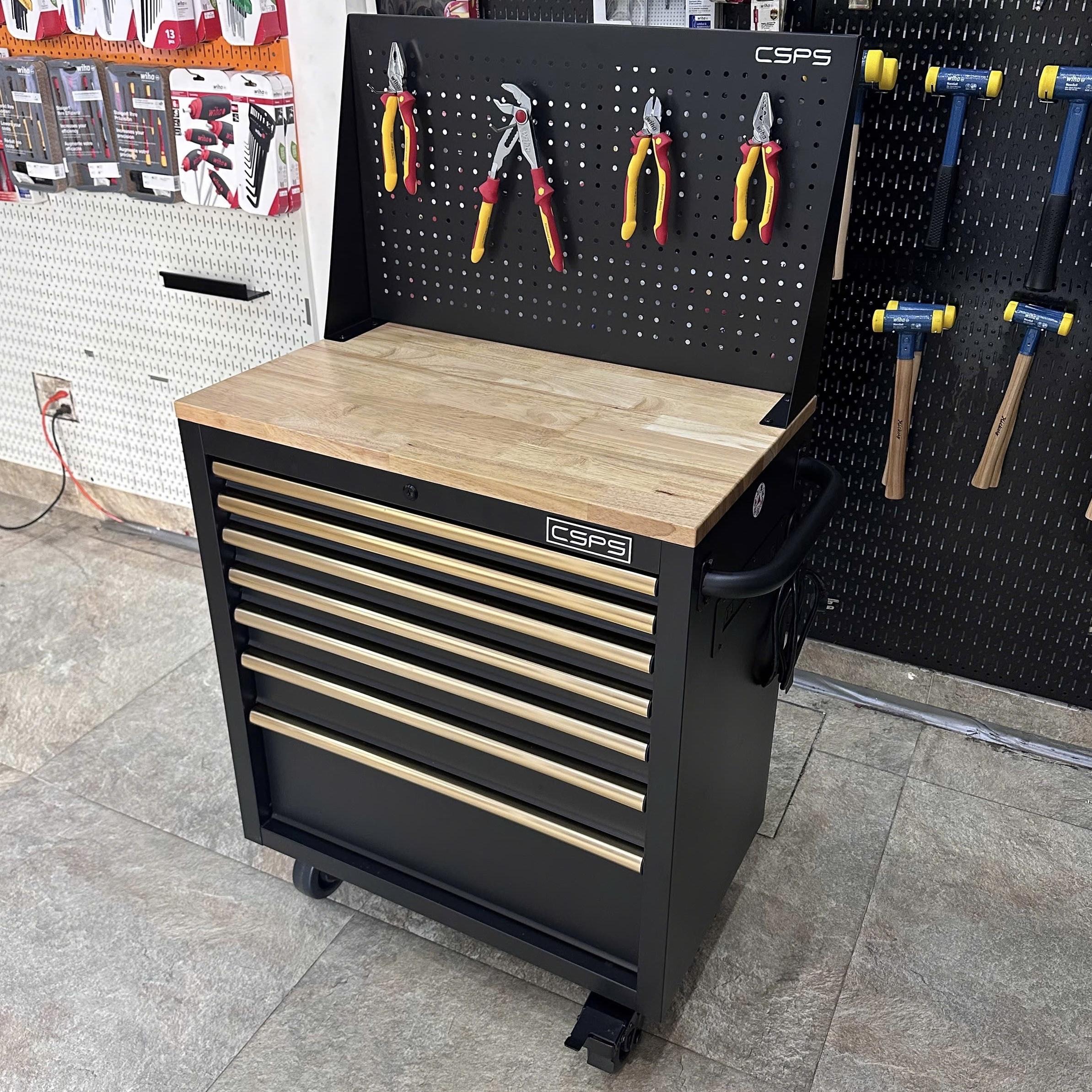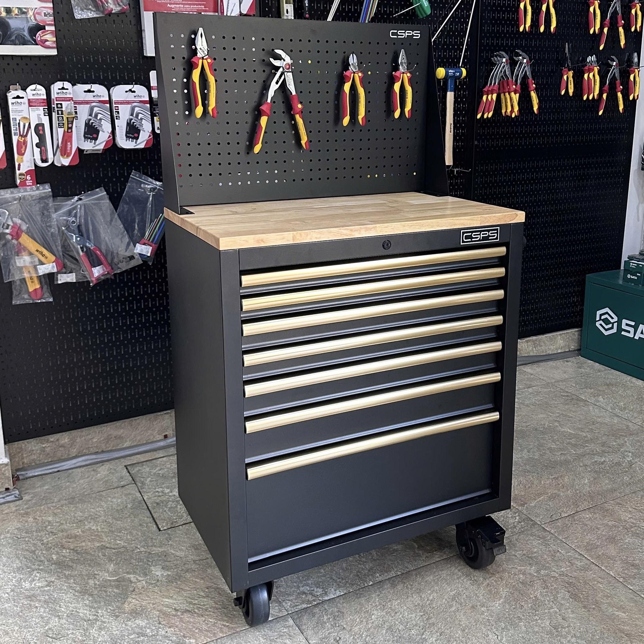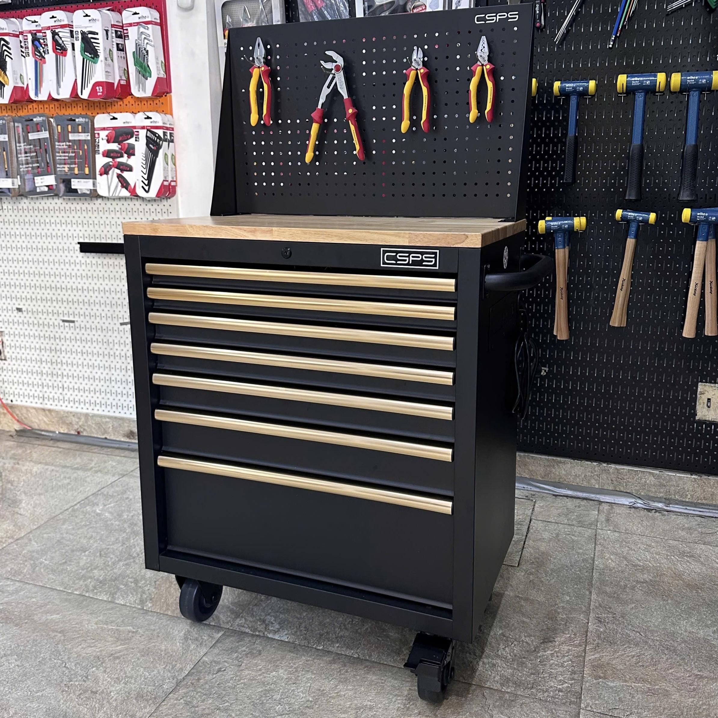 Tủ dụng cụ CSPS 76 cm + kết hợp vách lưới – 07 hộc kéo, giúp bạn sắp xếp khu vực làm việc hiệu quả, là một trang bị cần thiết cho nhà máy, garage, cửa hàng hay văn phòng làm việc / CSPS tool cabinet 76 cm – 05 drawers which is suitable for workshop, factory, garage, shop, office… will help you organize working area efficiently.