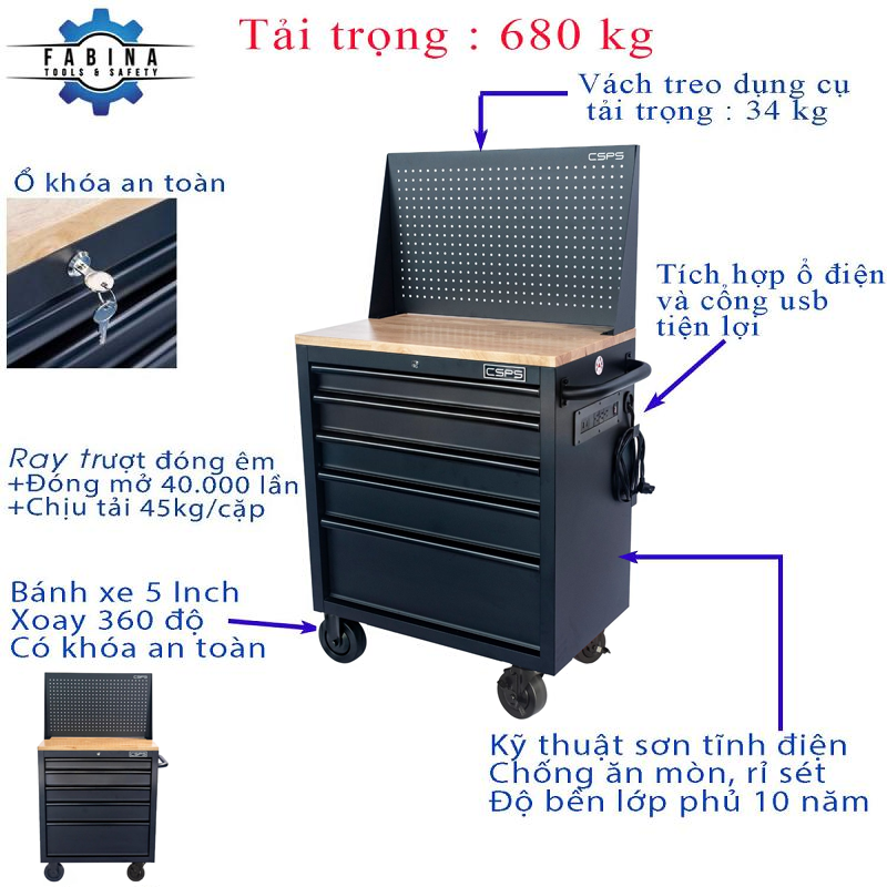 - CSPS được thành lập từ năm 1993 và là công ty OEM hàng đầu thế giới trong lĩnh vực sản xuất tủ đồ nghề. Hiện tại các sản phẩm của CSPS đã có mặt ở thị trường Mỹ, Canada, Úc và Việt Nam. CSPS xây dựng nhà máy tại Việt Nam từ năm 2005 tại Bình Dương với 01 nhà xưởng chuyên sản xuất Tủ dụng cụ, bàn dụng cụ xuất qua Mỹ theo OEM và ODM. Lần lượt các năm 2015, 2016, CSPS mở rộng thêm 02 nhà xưởng nhằm phục vụ cho nhu cầu sản lượng và số lượng đơn đặt hàng ngày càng gia tăng. Năm 2018, CSPS định hướng phát triển sản phẩm tủ đồ nghề, bàn dụng cụ vào thị trường Việt Nam và chọn FABINA Tools & Safety là đối tác chính cho việc phân phối các sản phẩm trên cả nước.