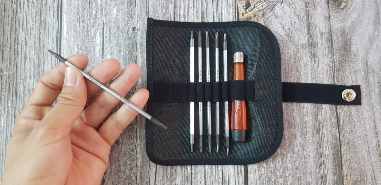 6 bits có 12 đầu gồm 4 loại mũi: Cộng- Dẹp- Lục Giác- Hoa Thị Torx®