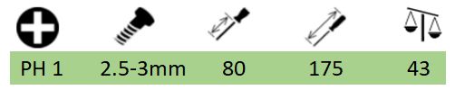 - Tua vít PH 1 - dùng để mở ốc Ø 2.5-3.0