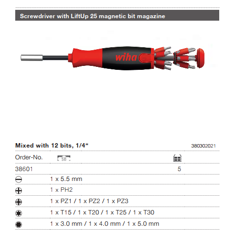 English Name :Screwdriver with bit magazine LiftUp 25 magnetic