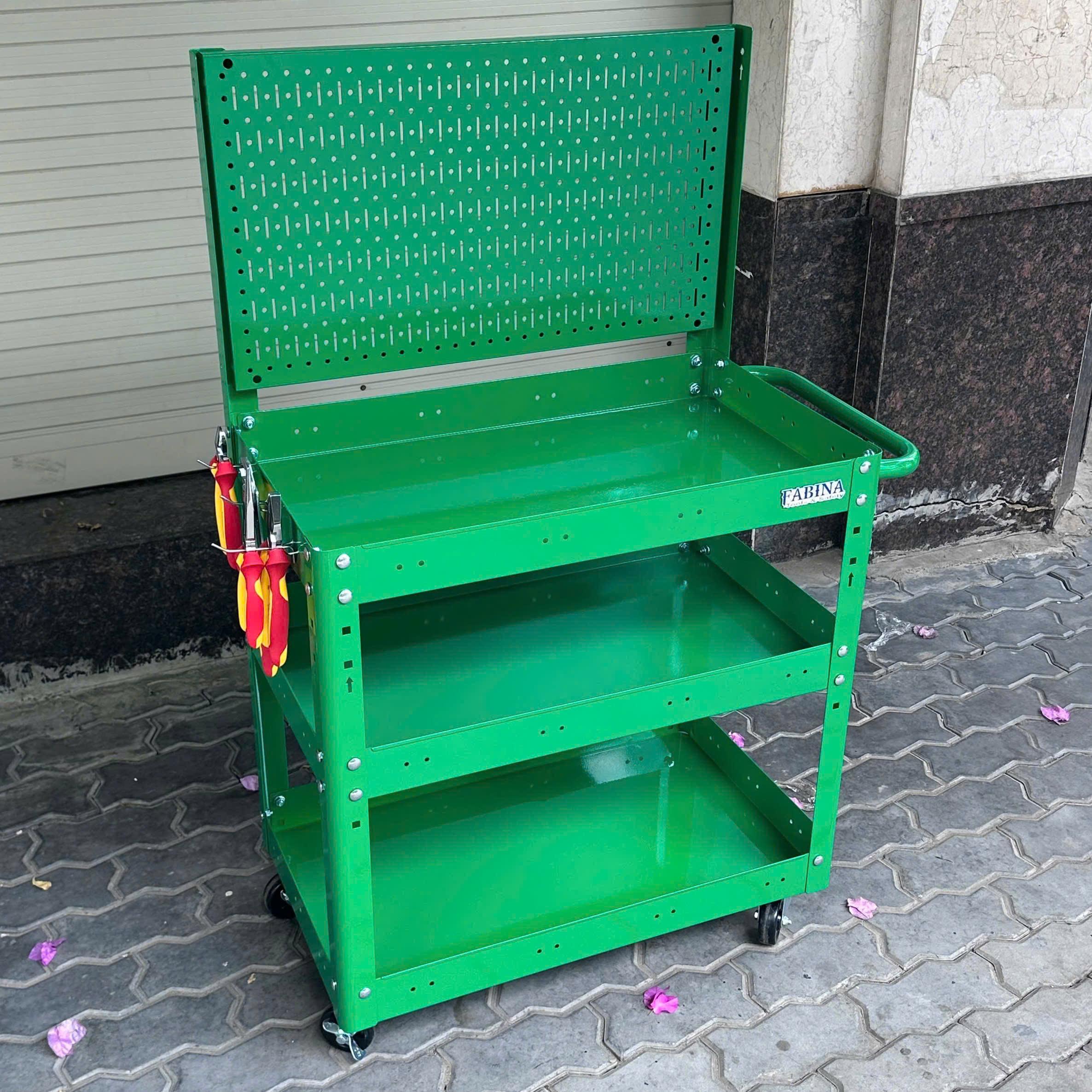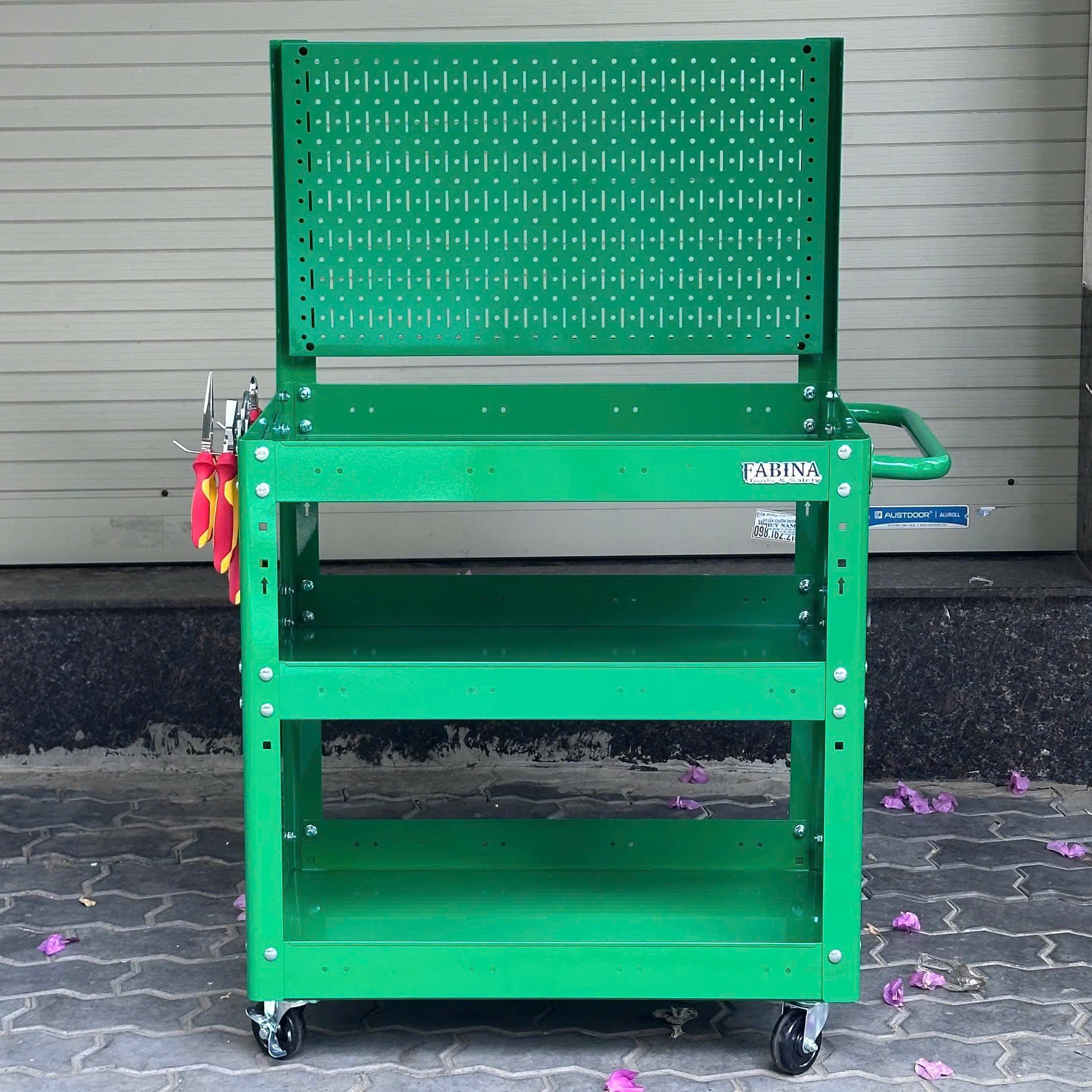 Xe đẩy 3 ngăn kèm vách lưới 72cm, Tiêu chuẩn Mỹ, sơn tĩnh điện, giúp bạn chứa dụng cụ và di chuyển dễ dàng trong quá trình làm việc, là một trang bị cần thiết cho nhà máy, garage, cửa hàng hay văn phòng làm việc